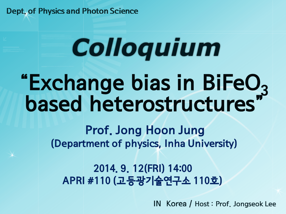* Speaker: Prof. Jong Hoon Jung (Inha University)