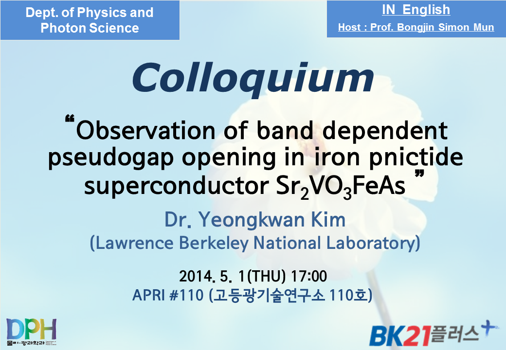 * Speaker: Dr. Yeongkwan Kim (Lawrence Berkeley National Laboratory)