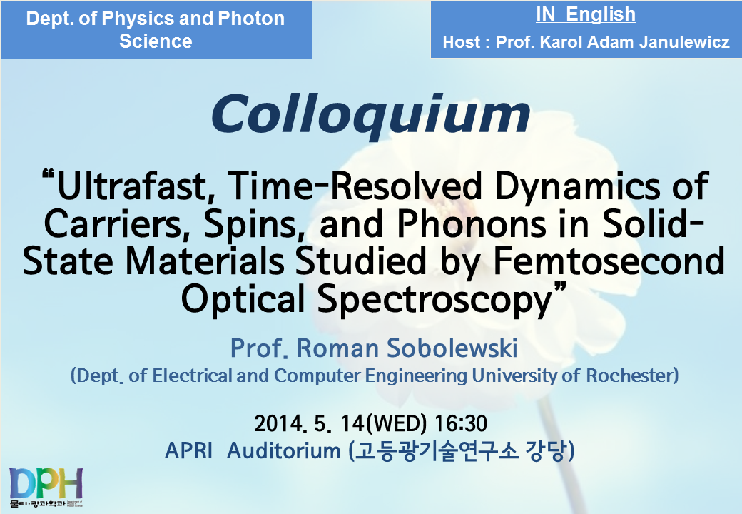* Speaker: Prof. Roman Sobolewski (Dept. of Electrical and Computer Engineering University of Rochester)