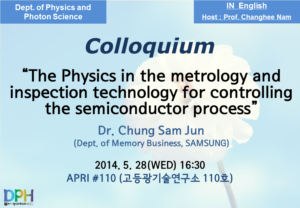 * Speaker: Dr. Chung Sam Jun (Dept. of Memory Business, SAMSUNG)