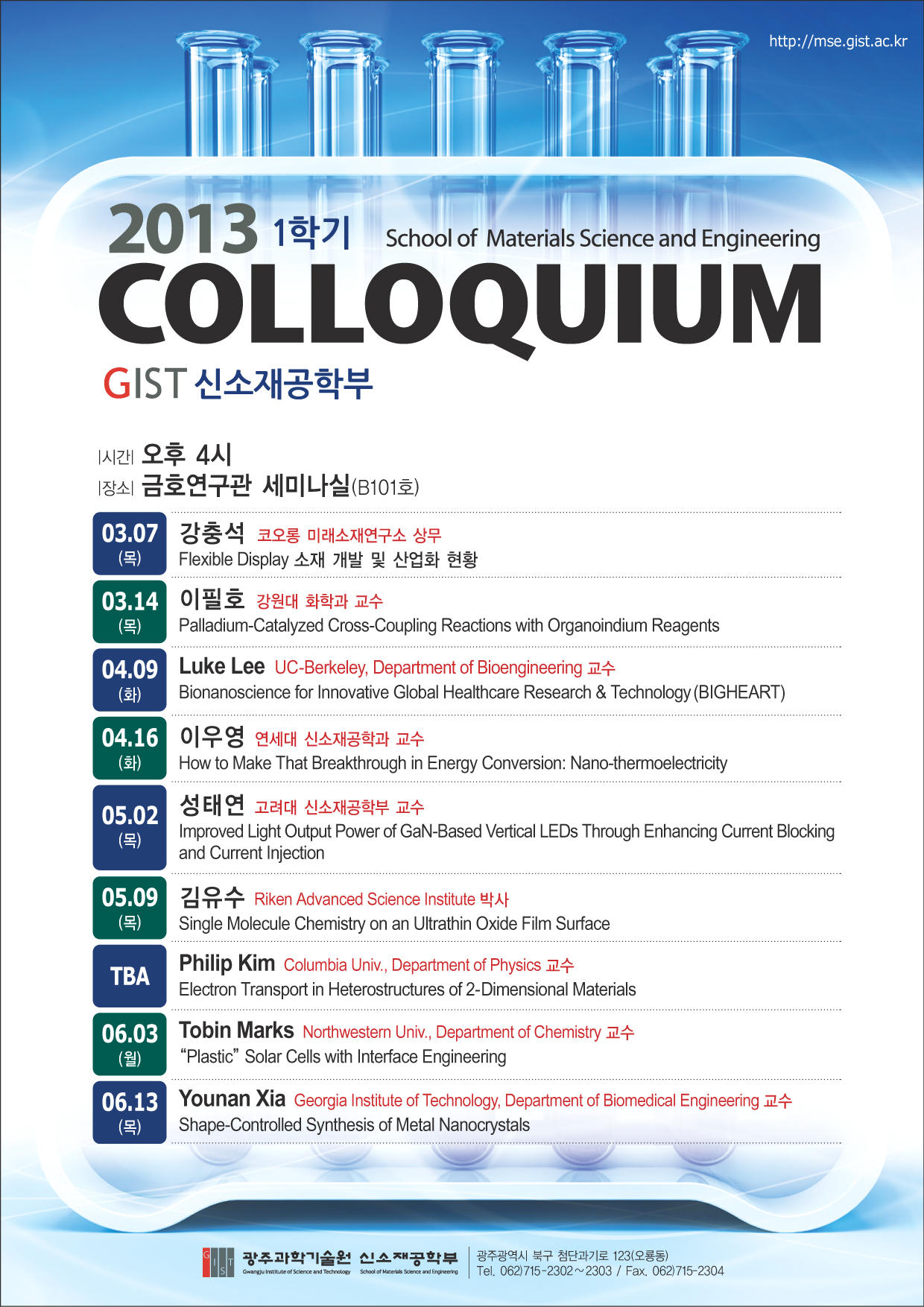 * Lecture Room : Kumho Research Hall, Seminar Room(Basement 101)