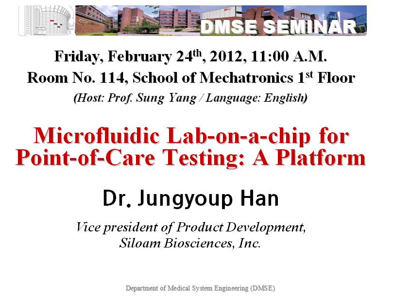[DMSE Seminar] 2/24(Fri)*11:00 A.M./Dr.Jungyoup Han/Microfluidic Lab-on-a-chip for Point-of-Care Testing: A Platform/Mecha.bldg.#114
