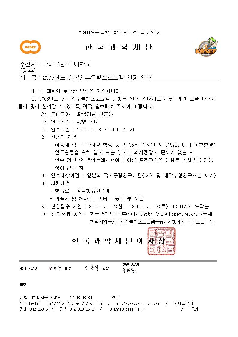 2008년도 일본연수특별프로그램을 아래와 같이 연장 안내하오니 많은 신청 바랍니다.