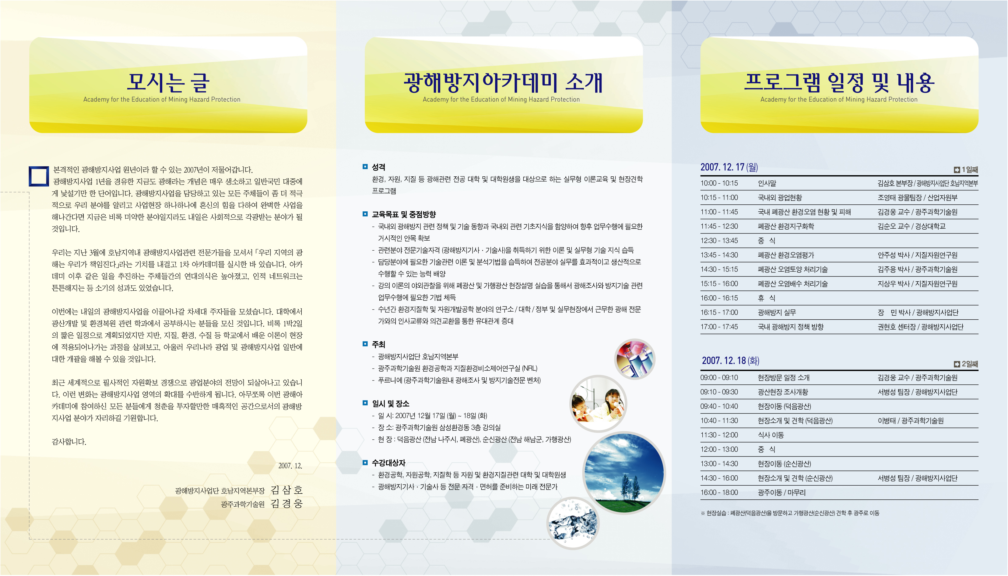 -환경,자원,지질 등 광해관련 전공자를 대상으로 하는 실무형 이론교육 및 현장견학 프로그램
