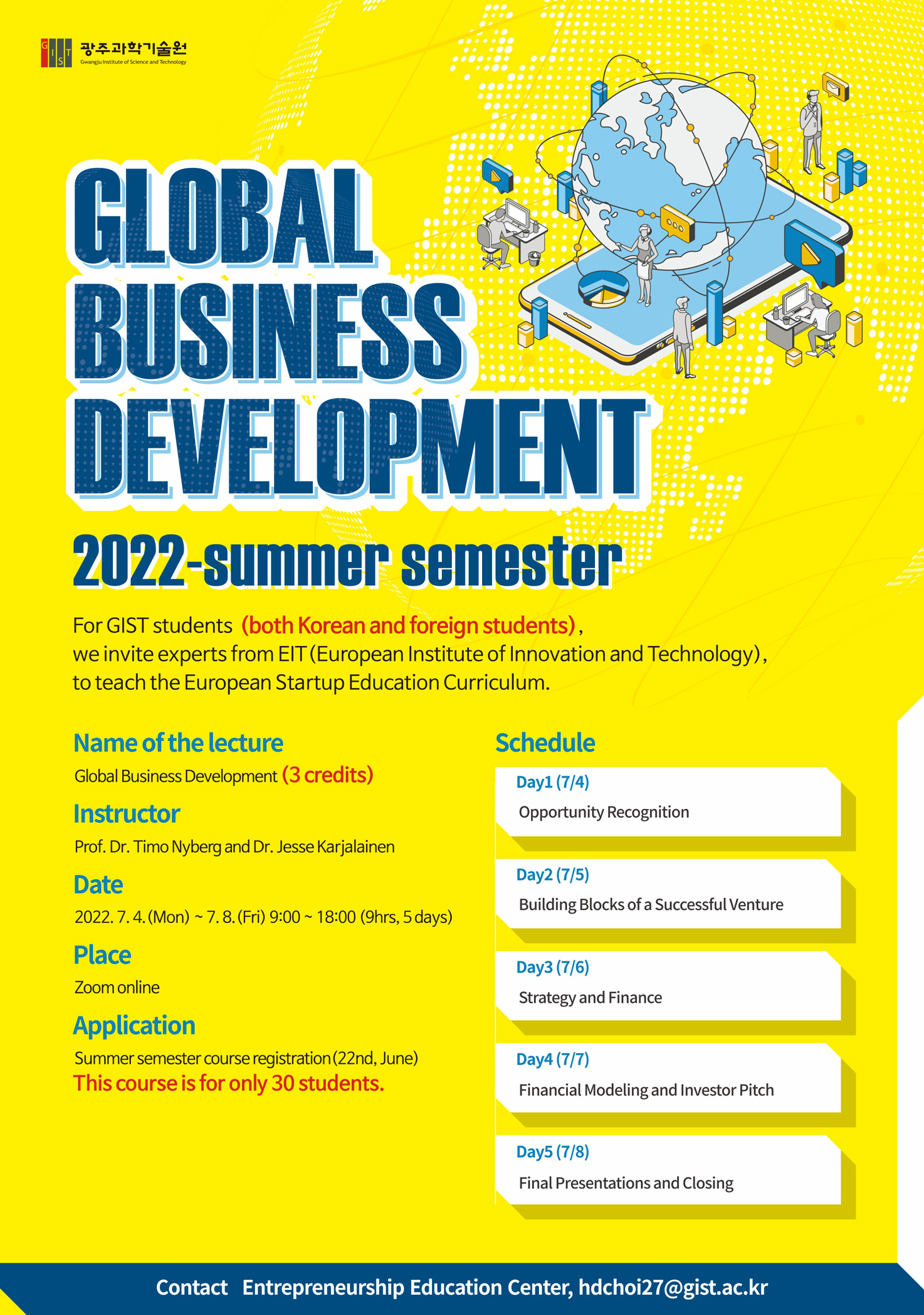 Contact: Entrepreneurship Education Center, hdchoi27@gist.ac.kr