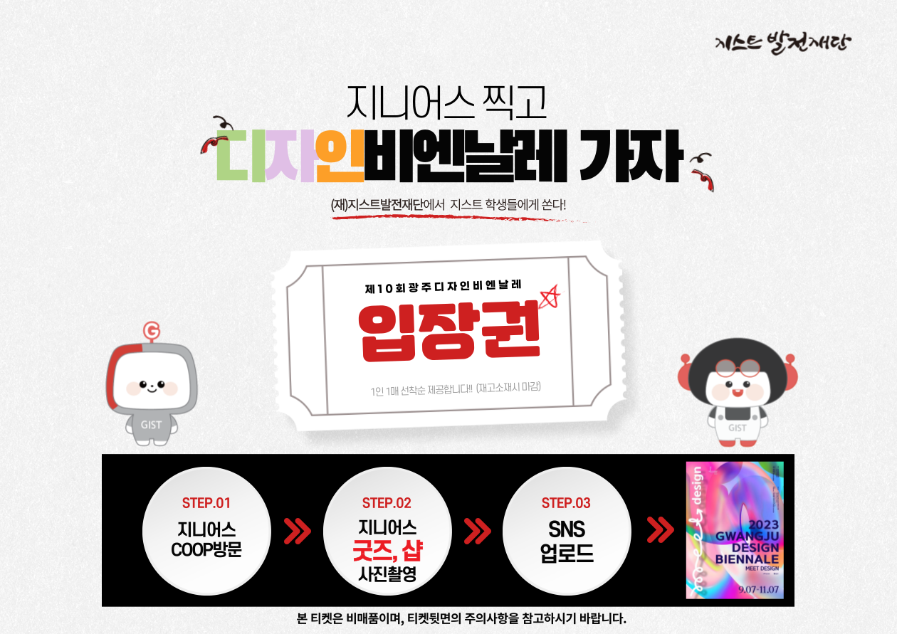 (재)지스트발전재단에서는 지스트 구성원분들의 문화생활 지원과 지니어스COOP 활성화를 위해 작은 이벤트를 준비하였습니다.