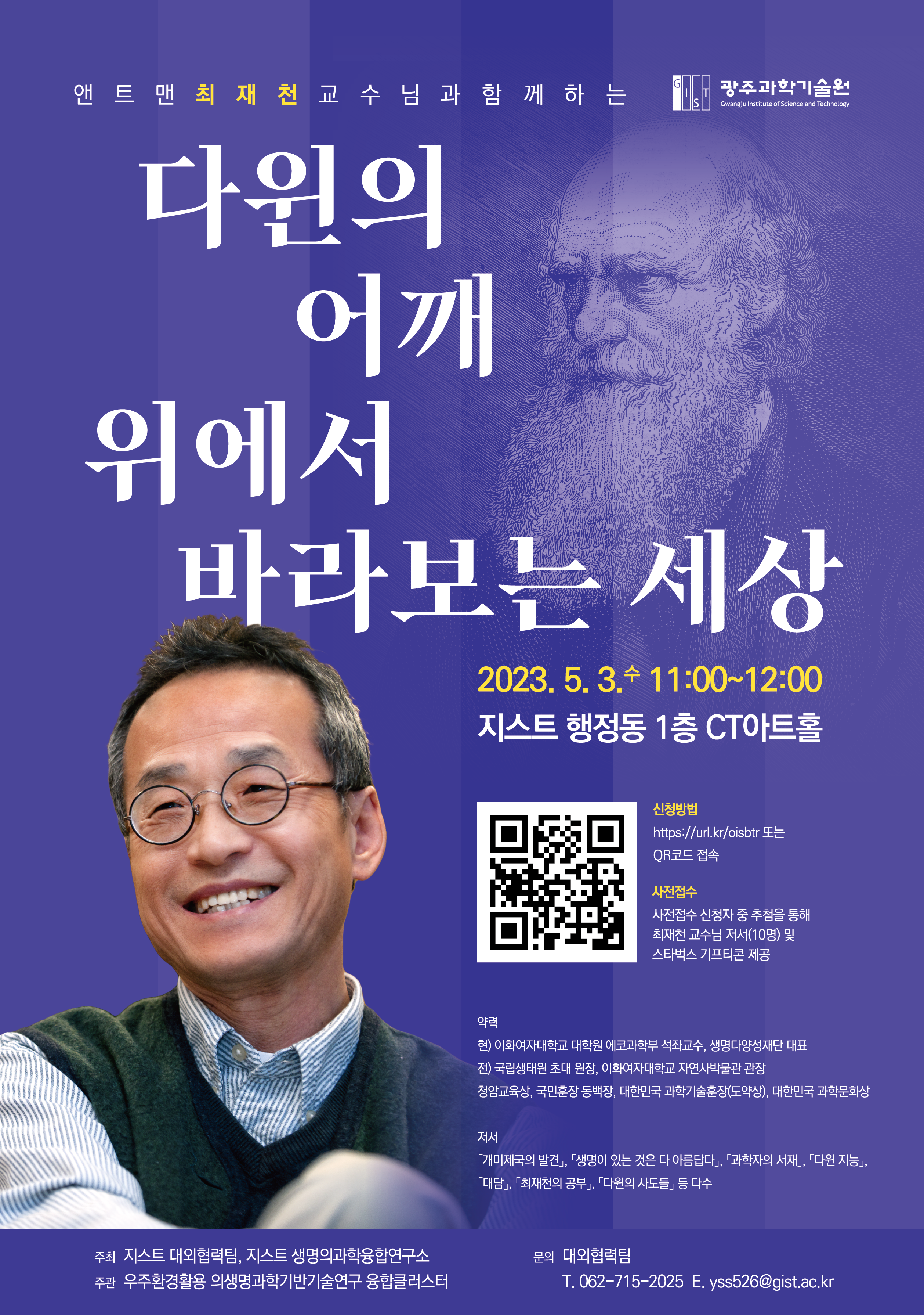 ※ 사전접수 신청자 중 추첨을 통해 최재천 교수님 저서(10명) 및 스타벅스 기프티콘 제공