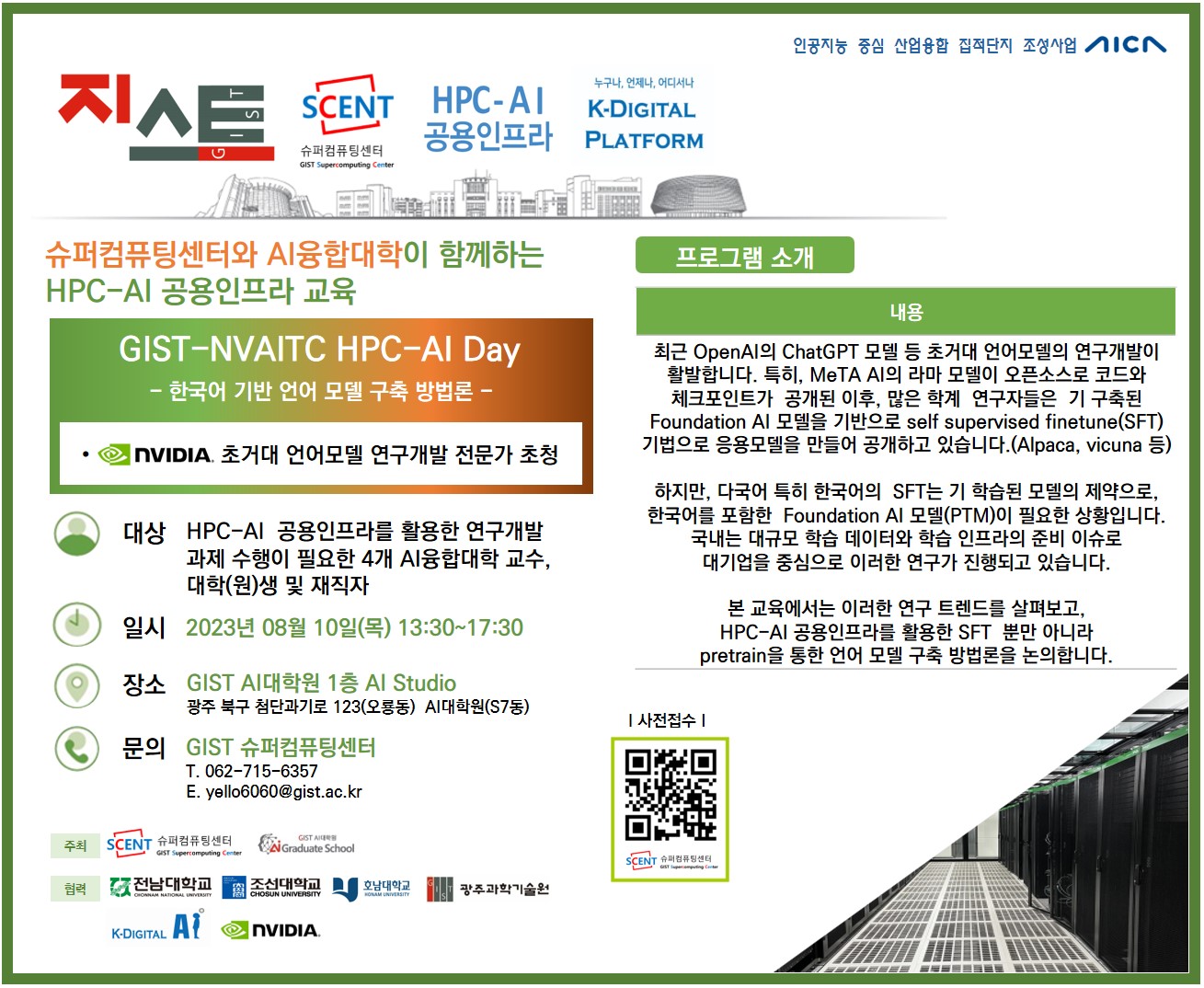 광주과학기술원 슈퍼컴퓨팅센터와 AI대학원이 주최하며