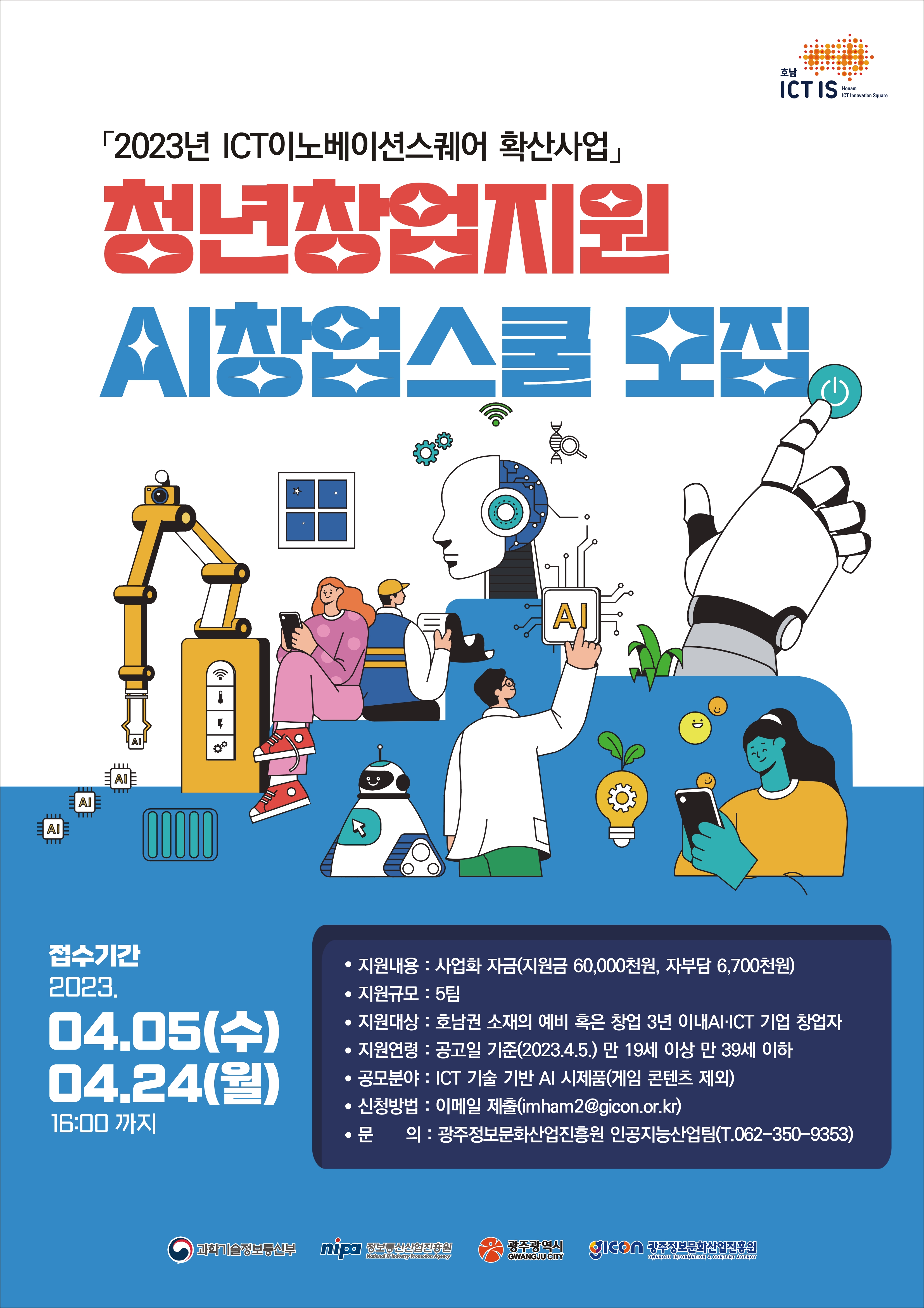 ![[광주정보문화산업진흥원] 「2023년 이노베이션스퀘어 확산사업」 청년창업지원 AI창업스쿨 모집관련 이미지로서 자세한 내용은 하단에 위치해 있습니다.](http://www.gist.ac.kr/_prog/download/?editor_image=20230411161543329_Y7IEMXQE.jpg)