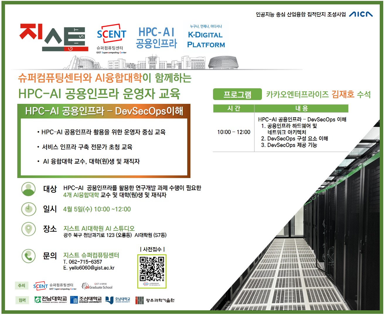 GIST 슈퍼컴퓨팅센터와 AI융합대학이 함께하는 HPC-AI 공용인프라 운영자 교육을 개최합니다.
