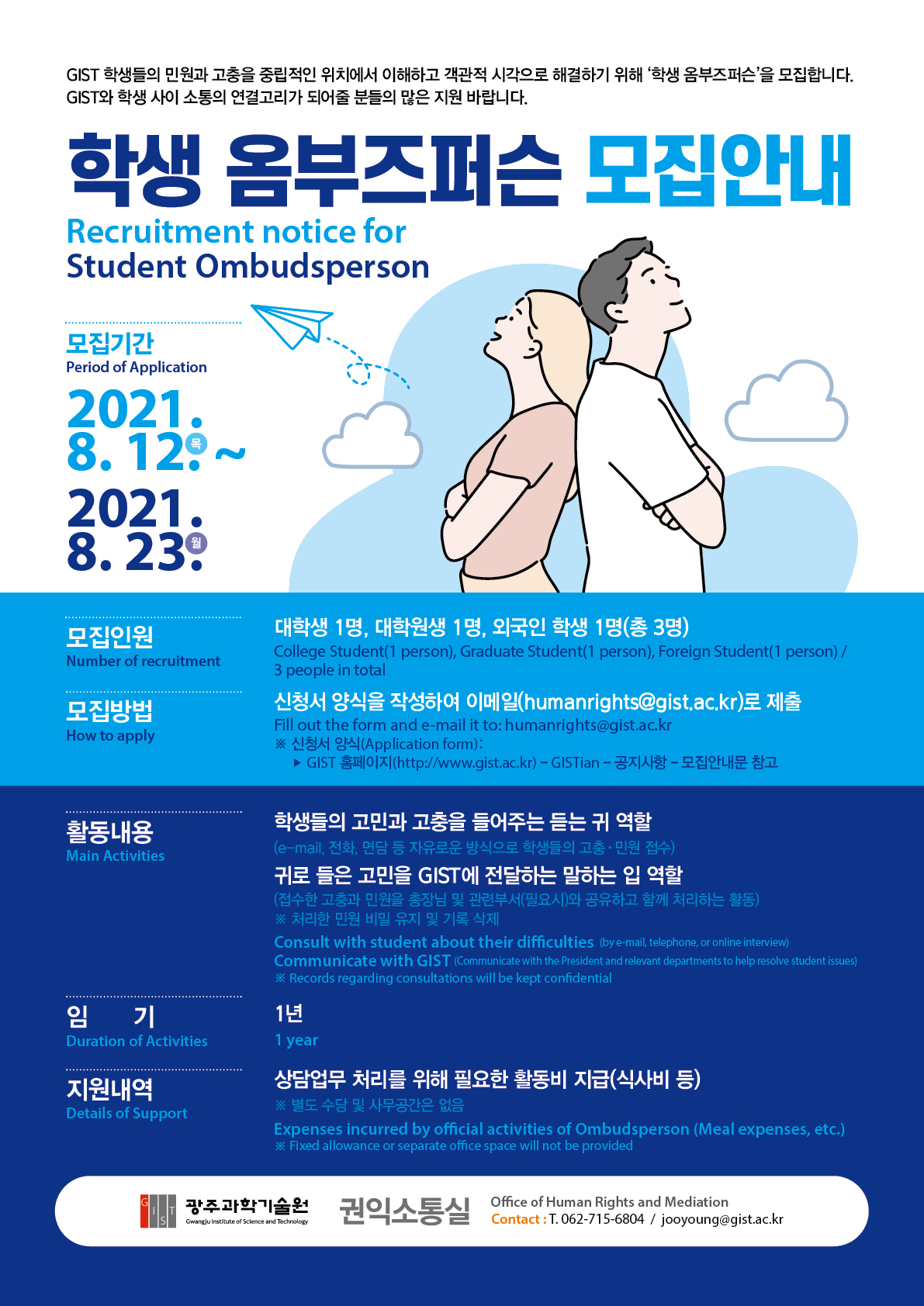 □ 문 의: 권익소통실 (T.062-715-6804/ jooyoung@gist.ac.kr)