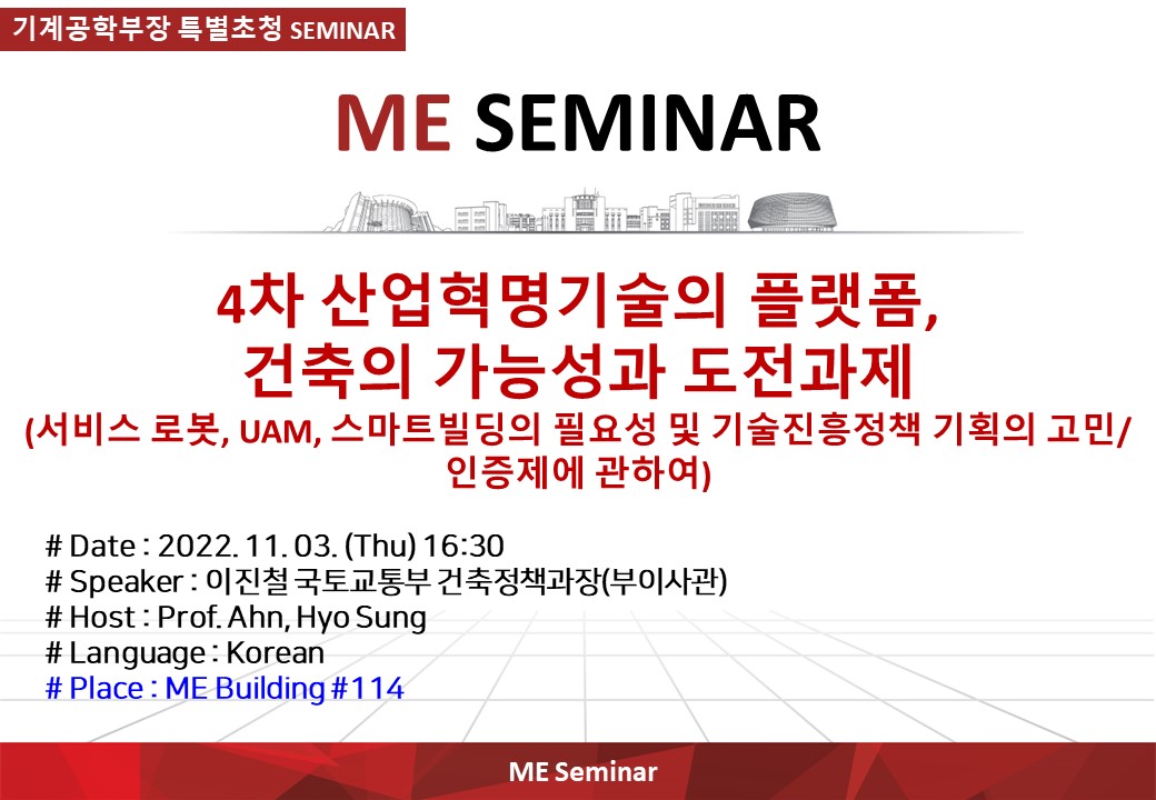 기계공학부장 특별초청 세미나를 원내 구성원께 공유드리고자 합니다.