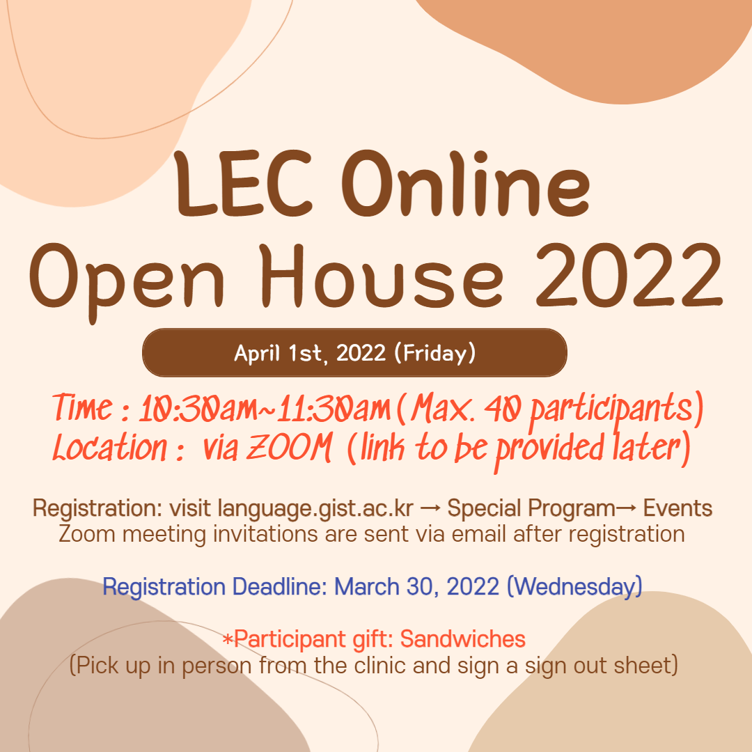 Join us for LEC Online Open House! Meet our language instructor and talk freely with GIST students.