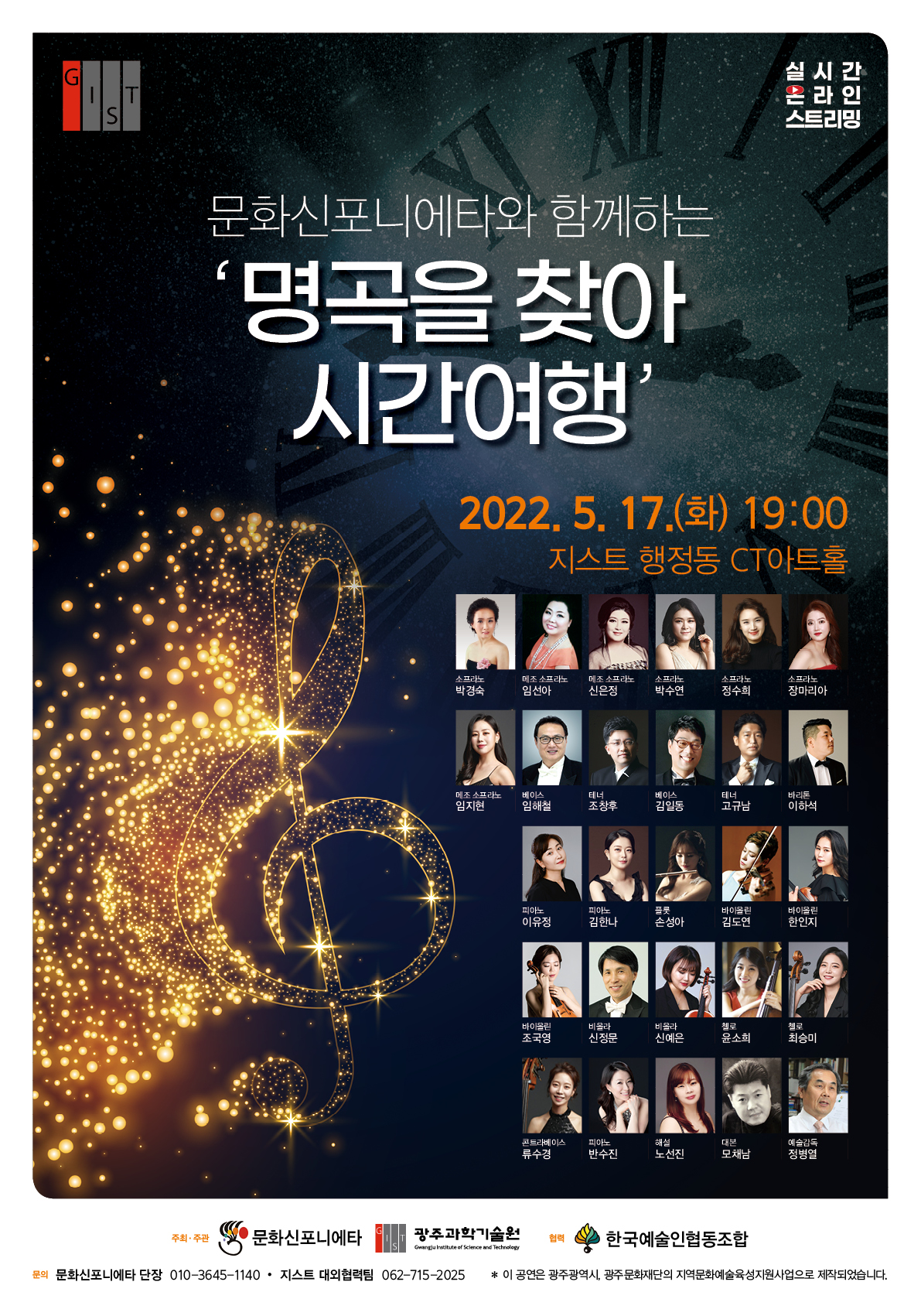 문의 : 문화신포니에타 단장 010-3645-1140 / 지스트 대외협력팀 062-715-2025 *이 공연은 광주광역시, 광주문화재단의 지역문화예술육성지원사업으로 제작되었습니다.