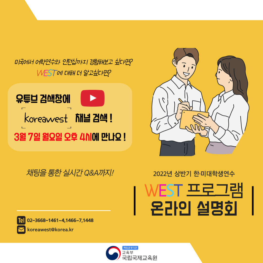 * WEST 프로그램 설명회 유튜브 스트리밍(3. 7. (월) 오후 4시)