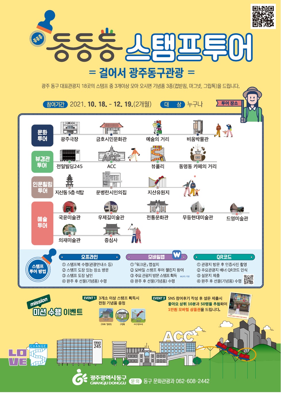 - 투어코스 : 전일빌딩 → 5.18 민주광장 → 구도청본관 → ACC 야외미디어아트 → 하늘마당 → 동명동 빛의상자 → 뷰폴리