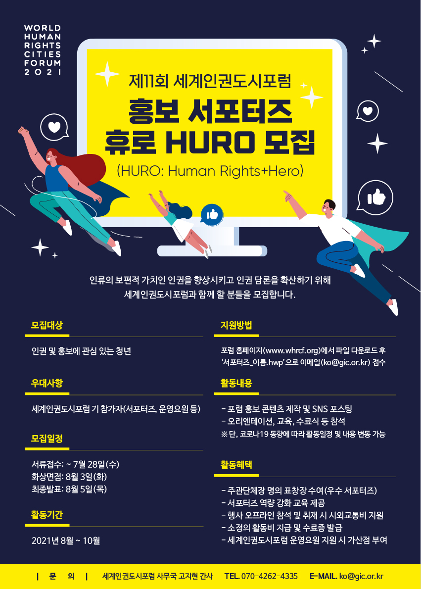제11회 세계인권도시포럼 홍보서포터즈 휴로 HURO 모집 안내