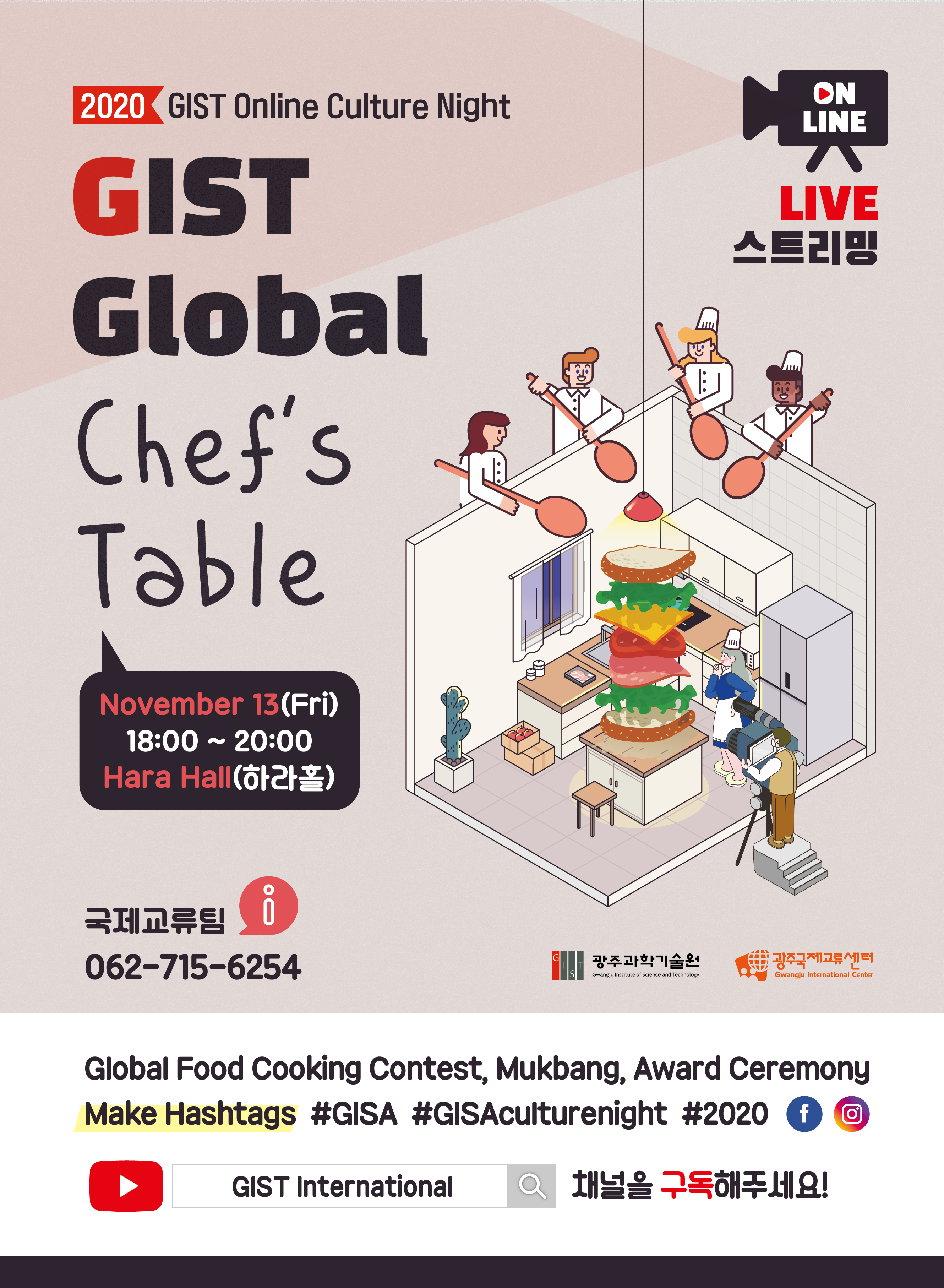 외국인 학생들이 주체가 되어 개최하는 2020 온라인 문화의 밤(2020 GIST Online Culture Night) 행사를 안내드립니다.