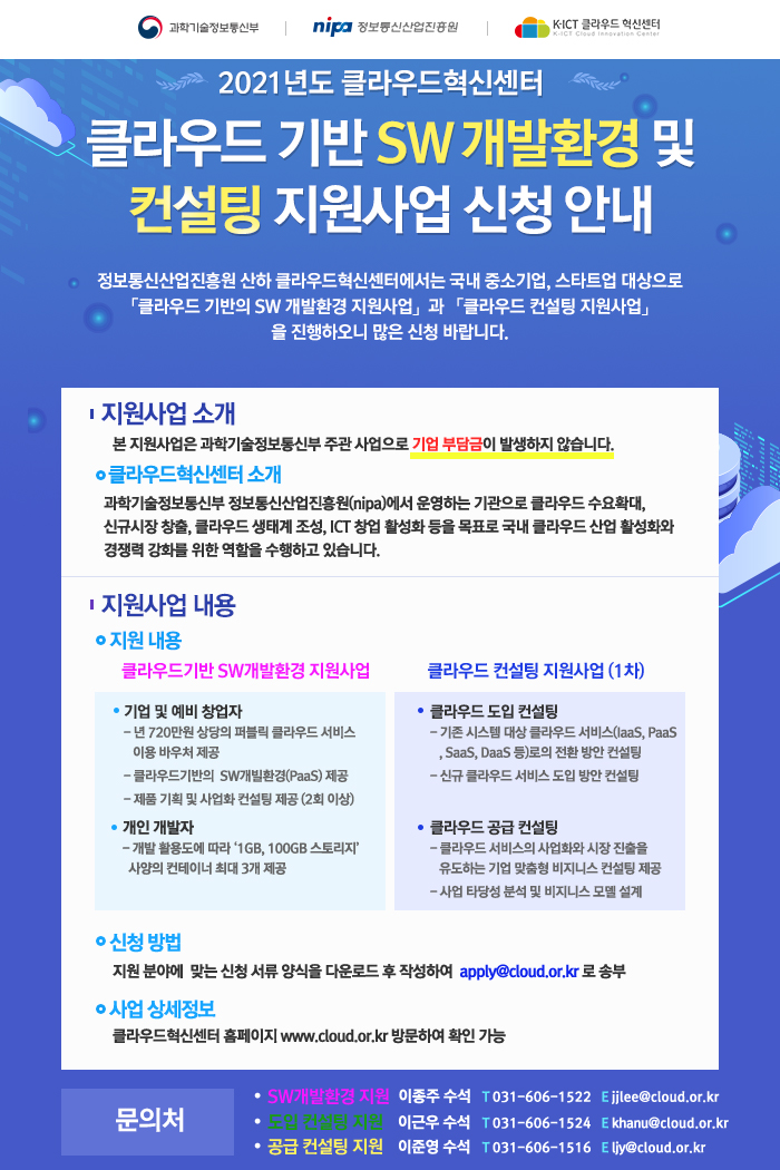 과학기술정보통신부 정보통신산업진흥원(nipa) 부설 클라우드혁신센터