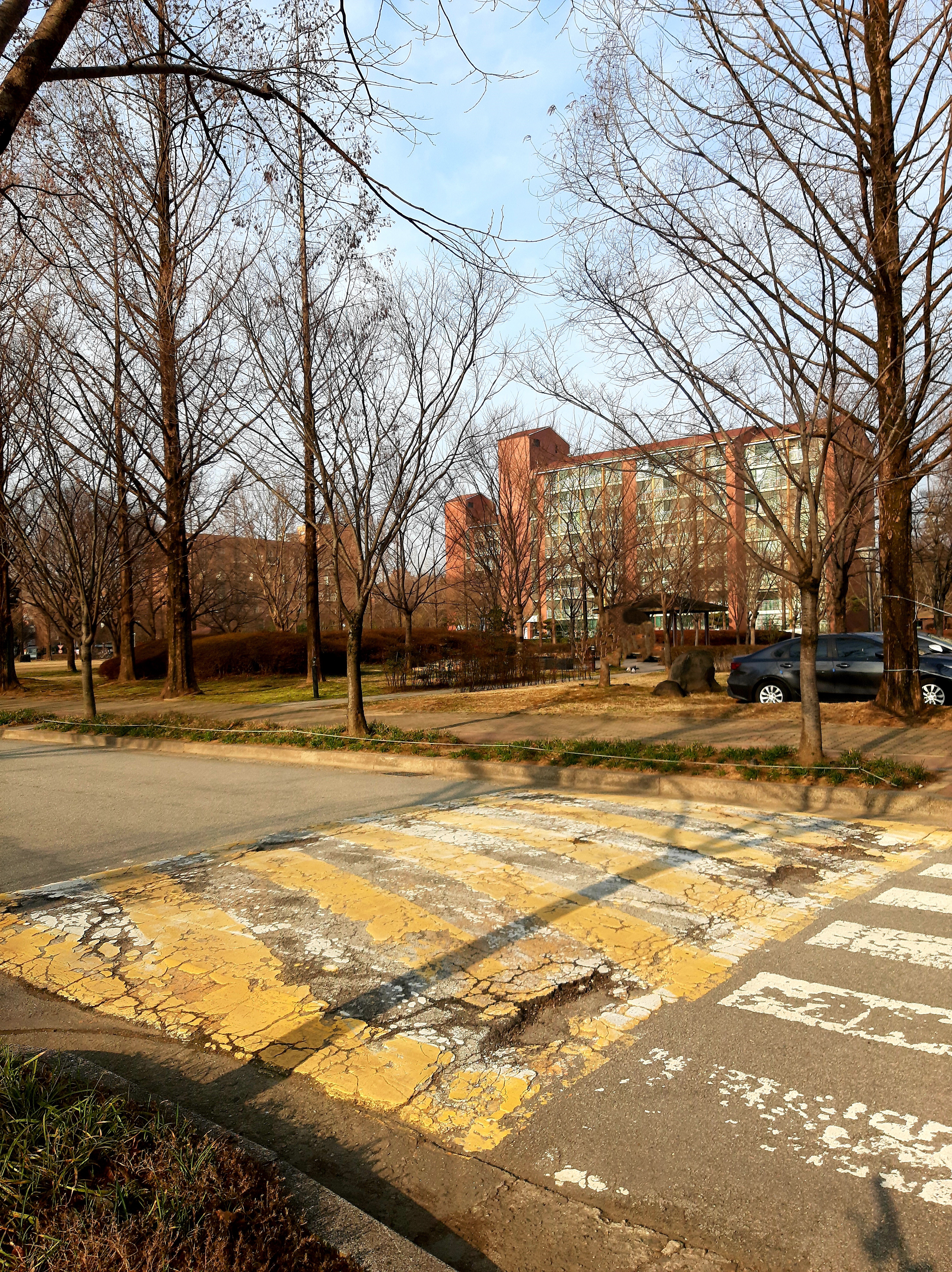 지니어스COOP 앞 과속방지턱에 포트홀이 많이 발생하여 보수가 필요합니다.