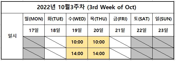 2022년 10월 2주차 1:1 취업상담 신청 스케줄을 아래와 같이 안내 하오니,
