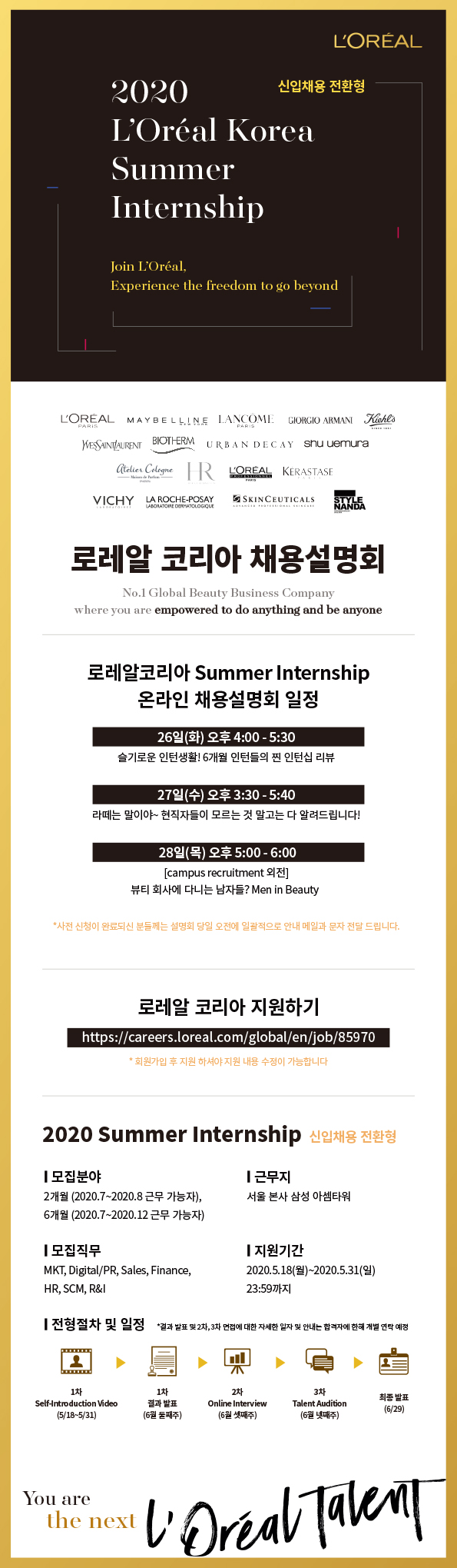 [로레알코리아] 2020 Summer Internship 모집 및 온라인 설명회 안내