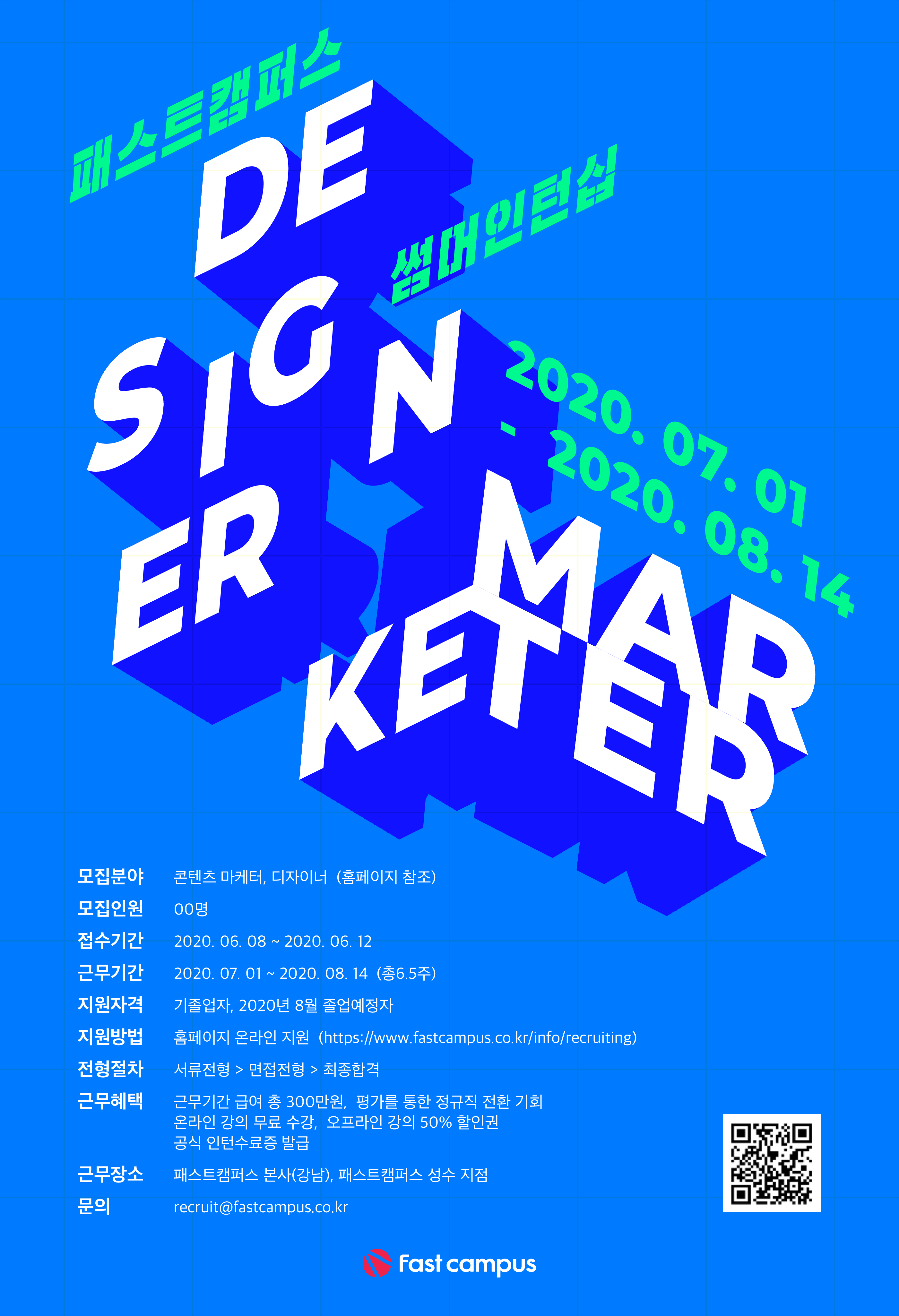 [패스트캠퍼스] Summer 인턴십 채용공고(~6.12)