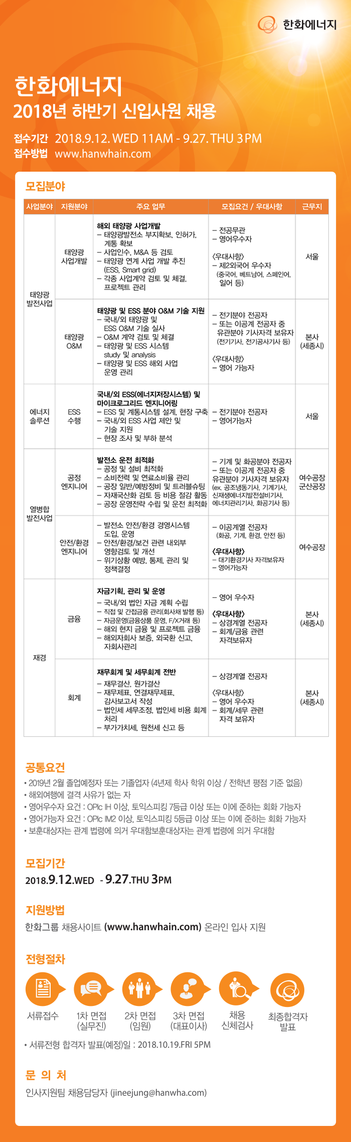 5. 문의처: 인사지원팀 채용담당자(jineejung@hanwha.com)