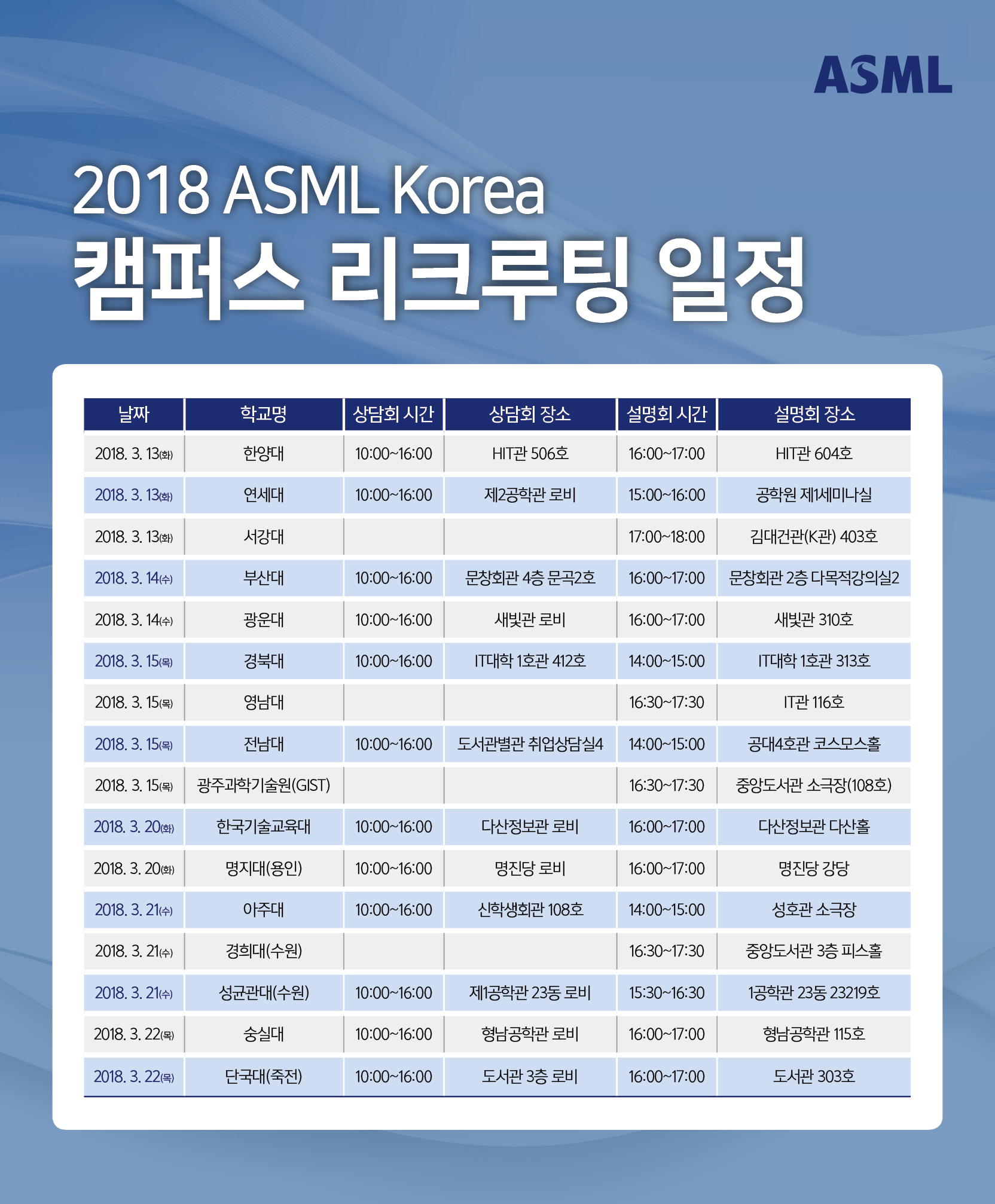 ■ 광주과학기술원 ASML KOREA 캠퍼스리크루팅 일정