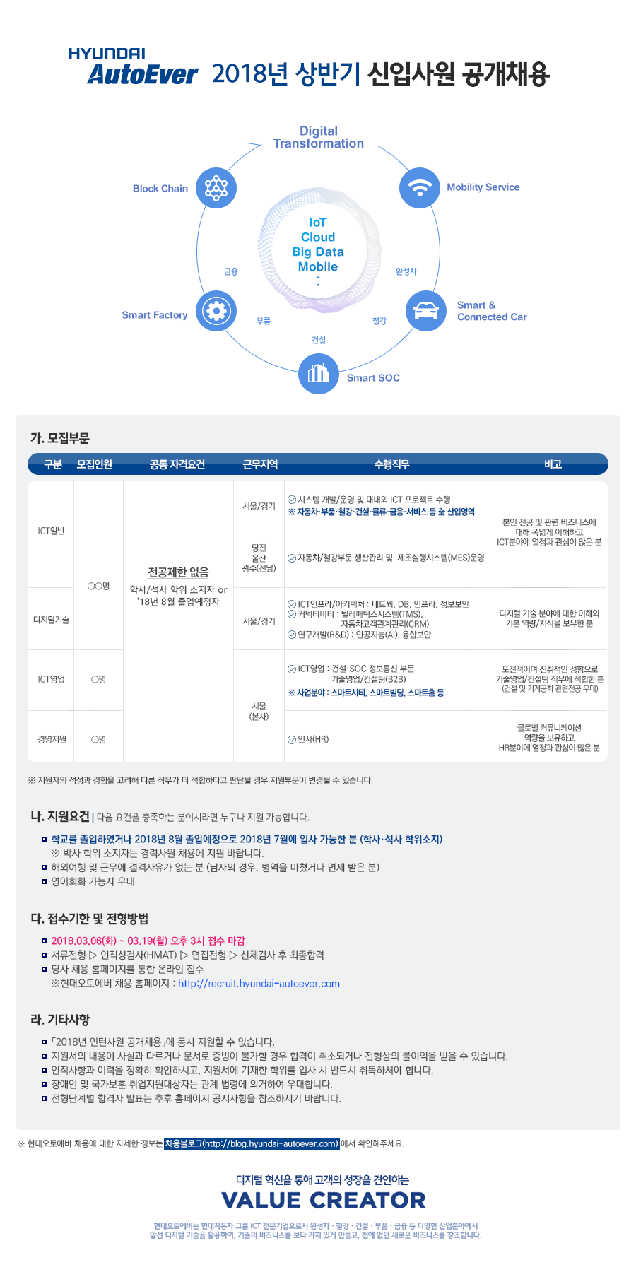 [현대오토에버] '18년 상반기 신입/인턴 모집공고 (~3.19)