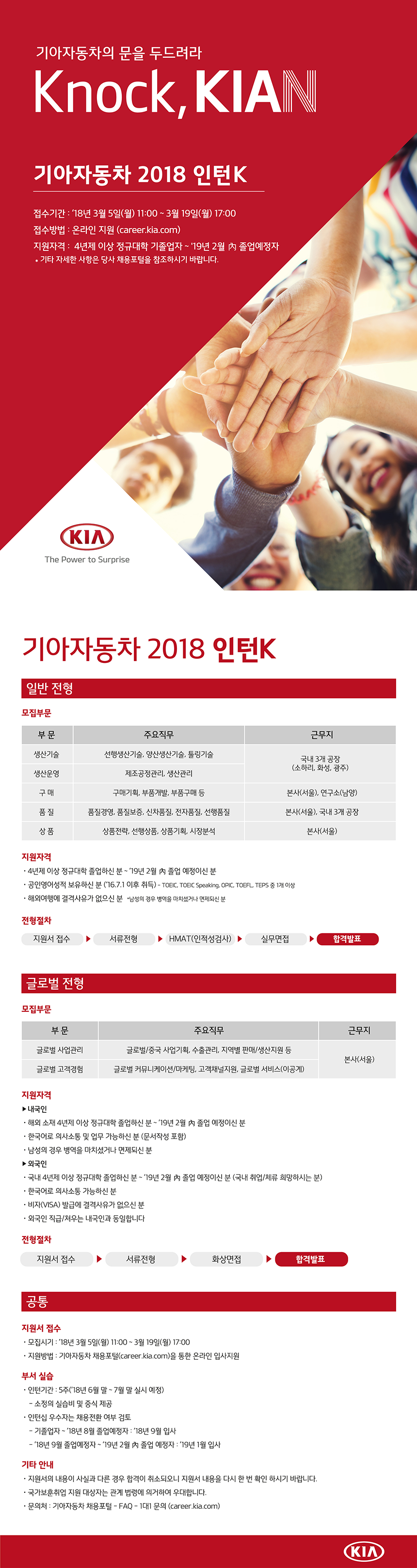 기아자동차㈜ 기아자동차 2018 인턴K (일반전형, 글로벌 전형)
