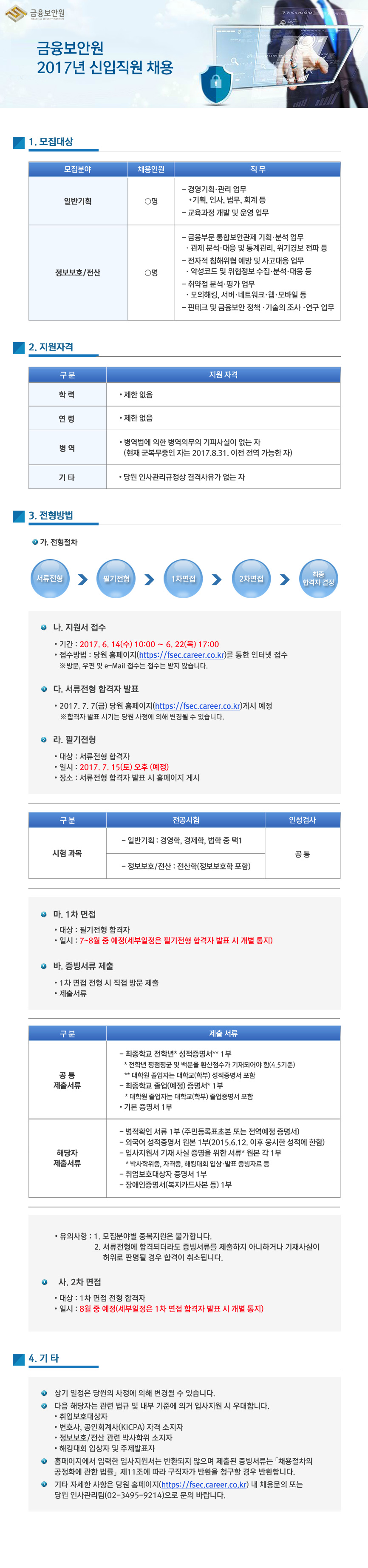 [금융보안원] 2017년 신입직원 채용공고 (~6월 22일)