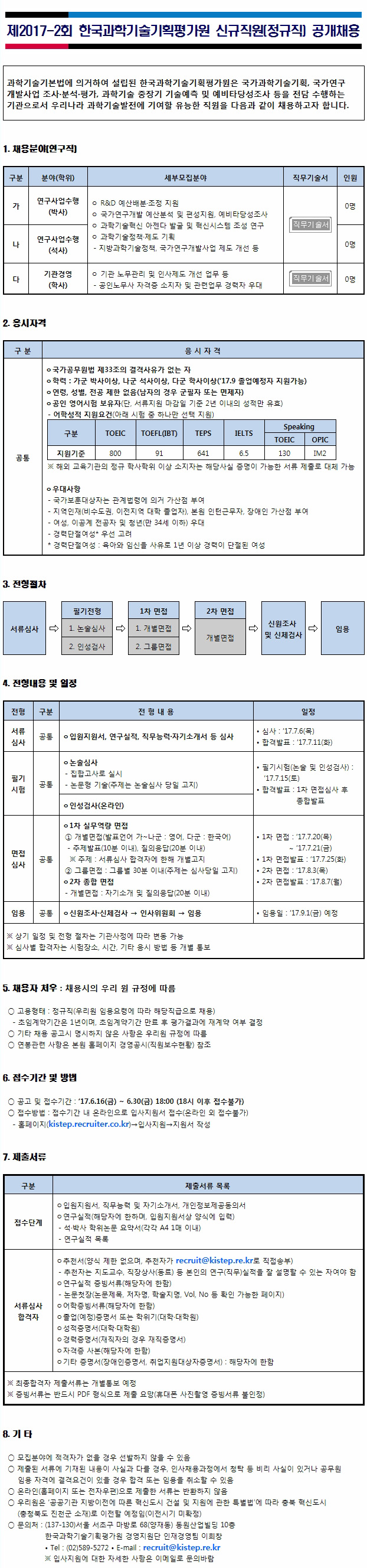 [한국과학기술기획평가원] 정규직 채용공고 (~6월 30일)