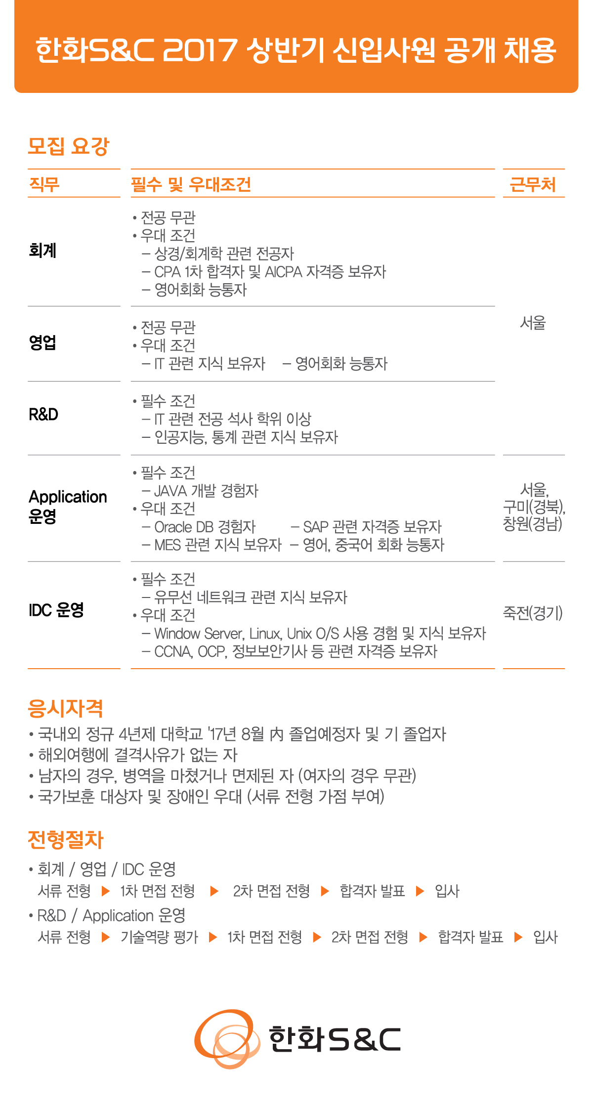 ■ 2017년 상반기 한화S&C 신입사원 공개 채용 안내