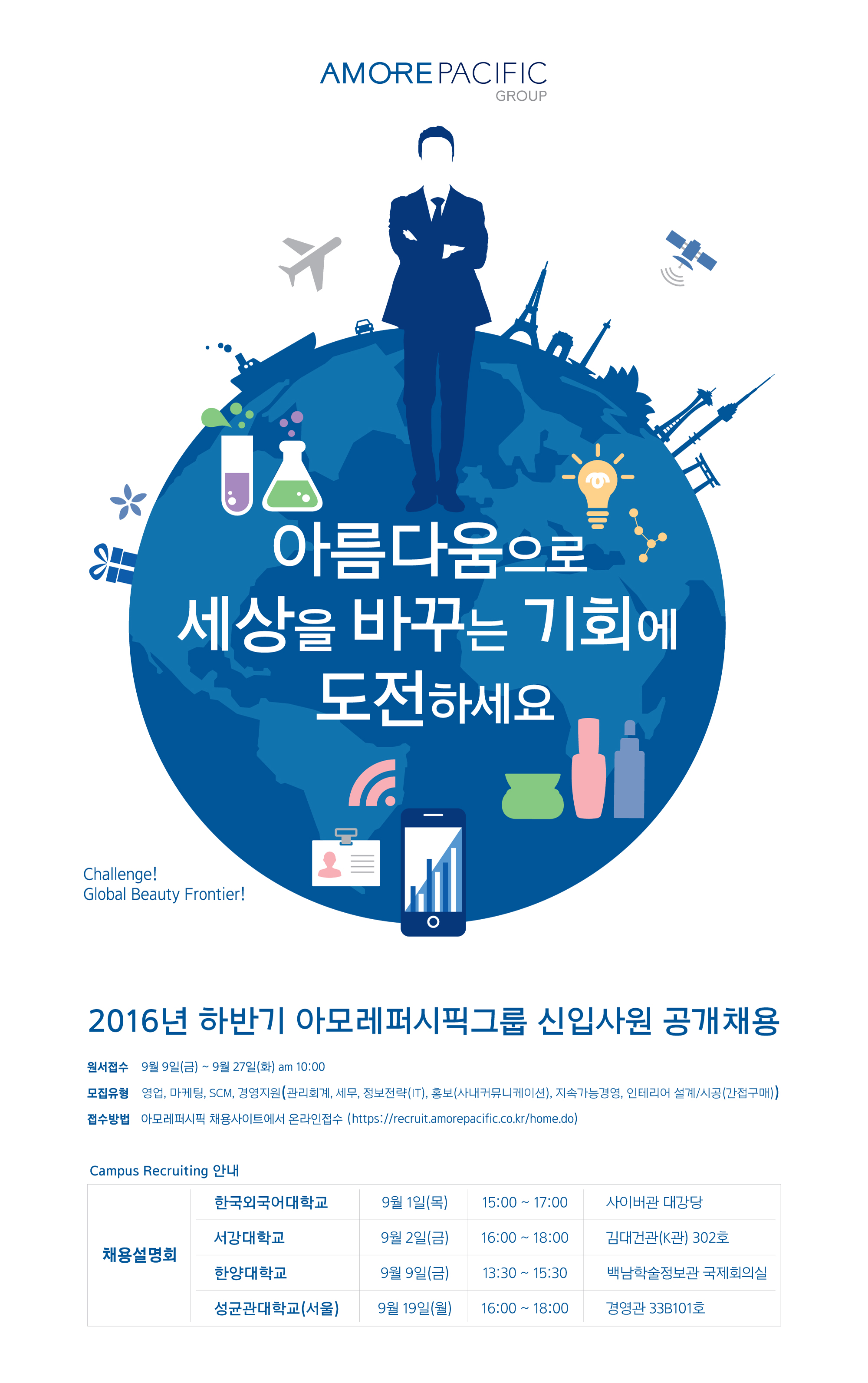 2016년 하반기 아모레퍼시픽 신입공채 모집합니다. 많은 관심 부탁 드립니다.