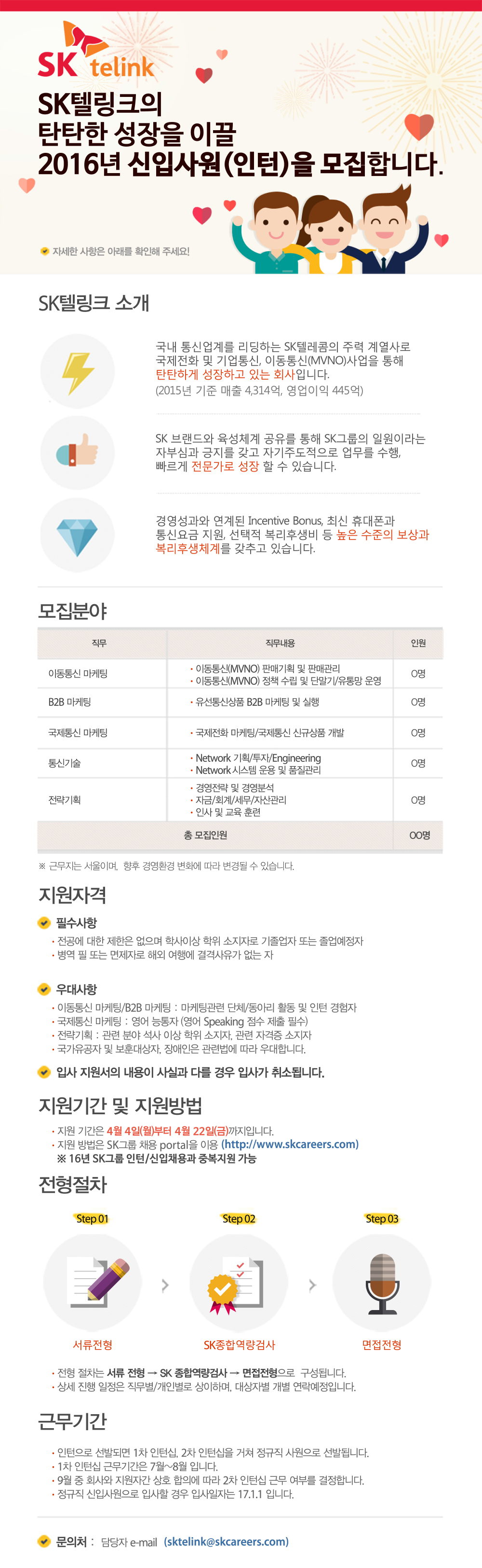 [모집기간 연장 게시요청] SK텔링크의 탄탄한 성장을 이끌 2016년 인턴사원을 모집합니다.(~4/22)