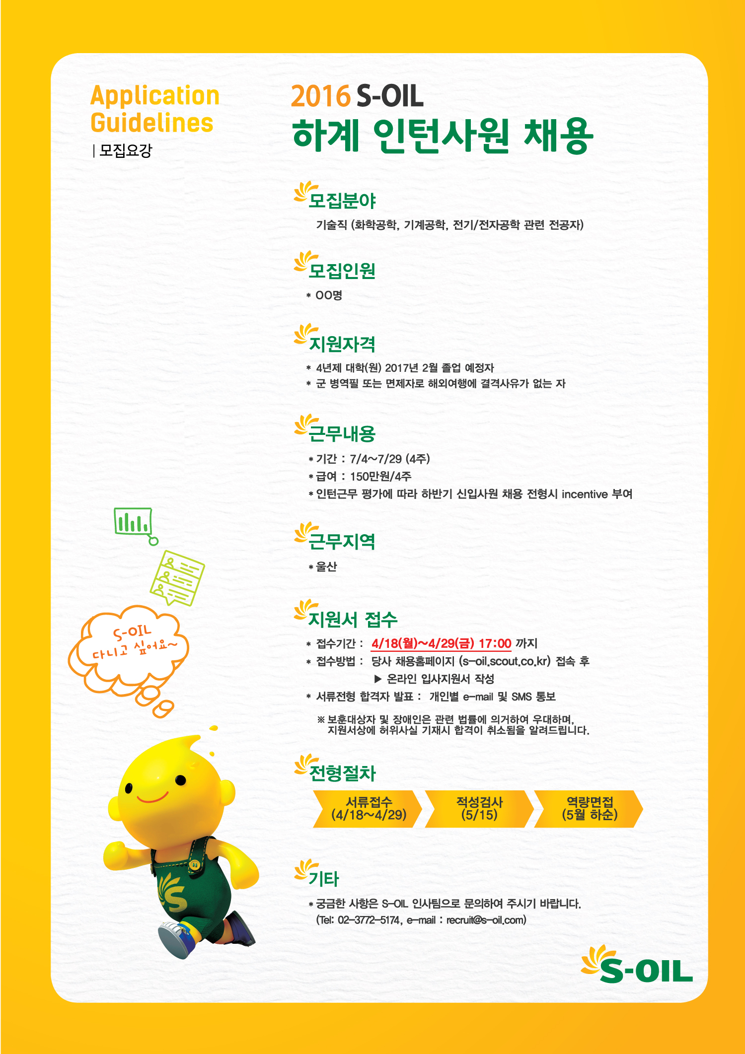 (Tel: 02-3772-5174, E-mail: recruit@s-oil.com)