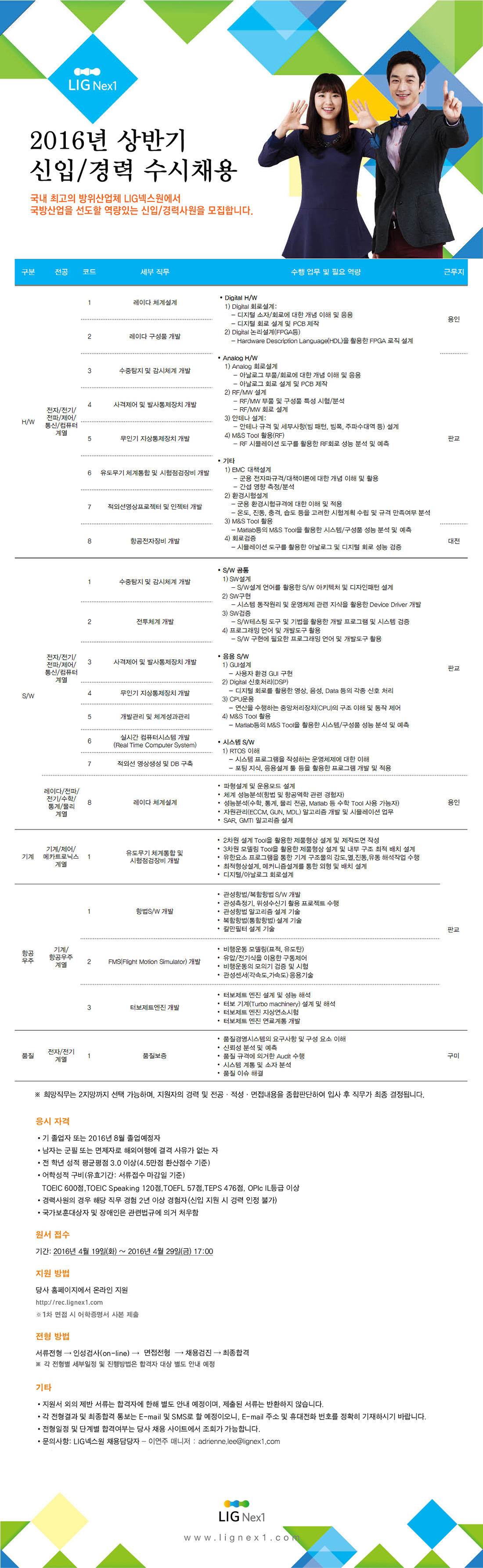 - 문의사항 : LIG넥스원 채용담당자 - 이연주 매니저 : adrienne.lee@lignex1.com