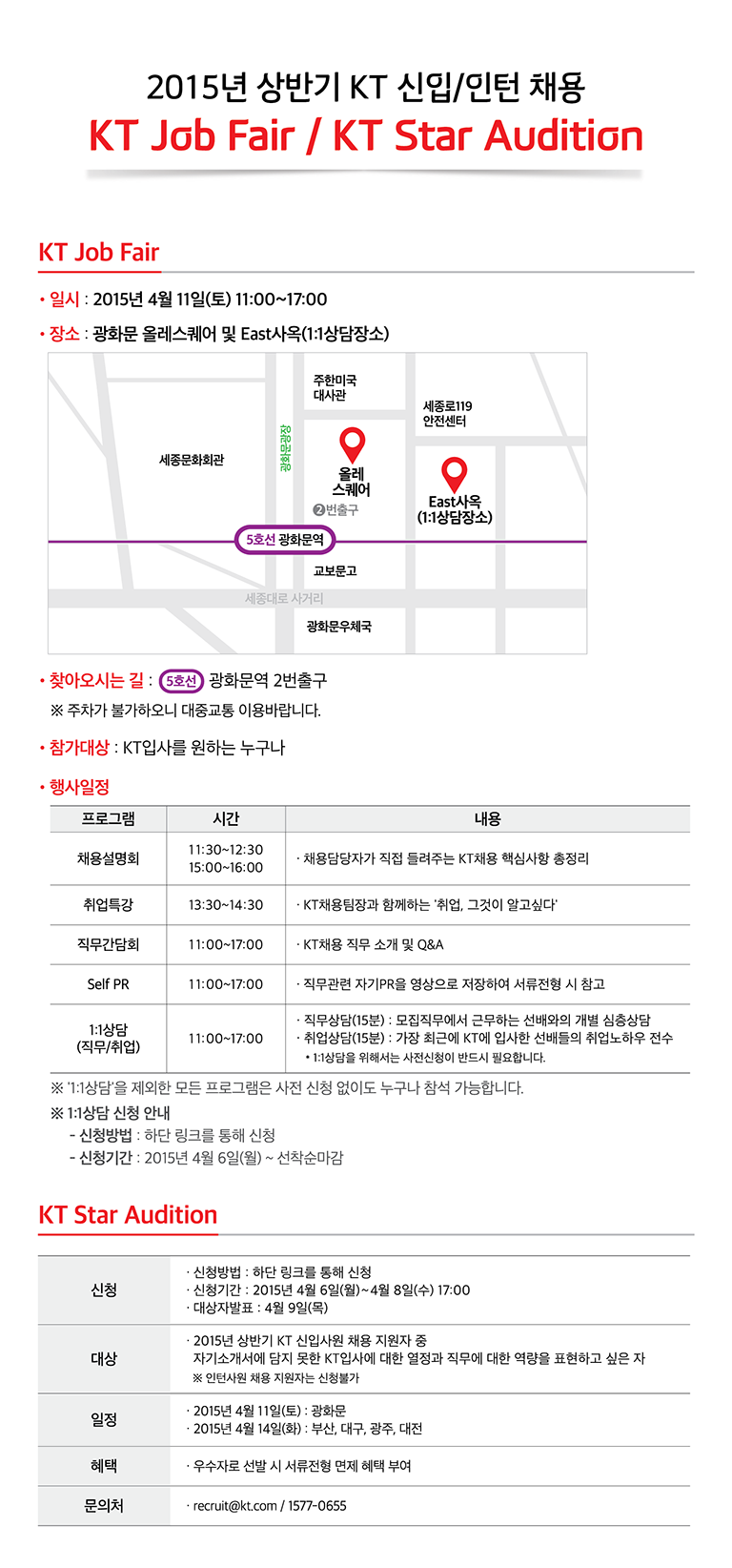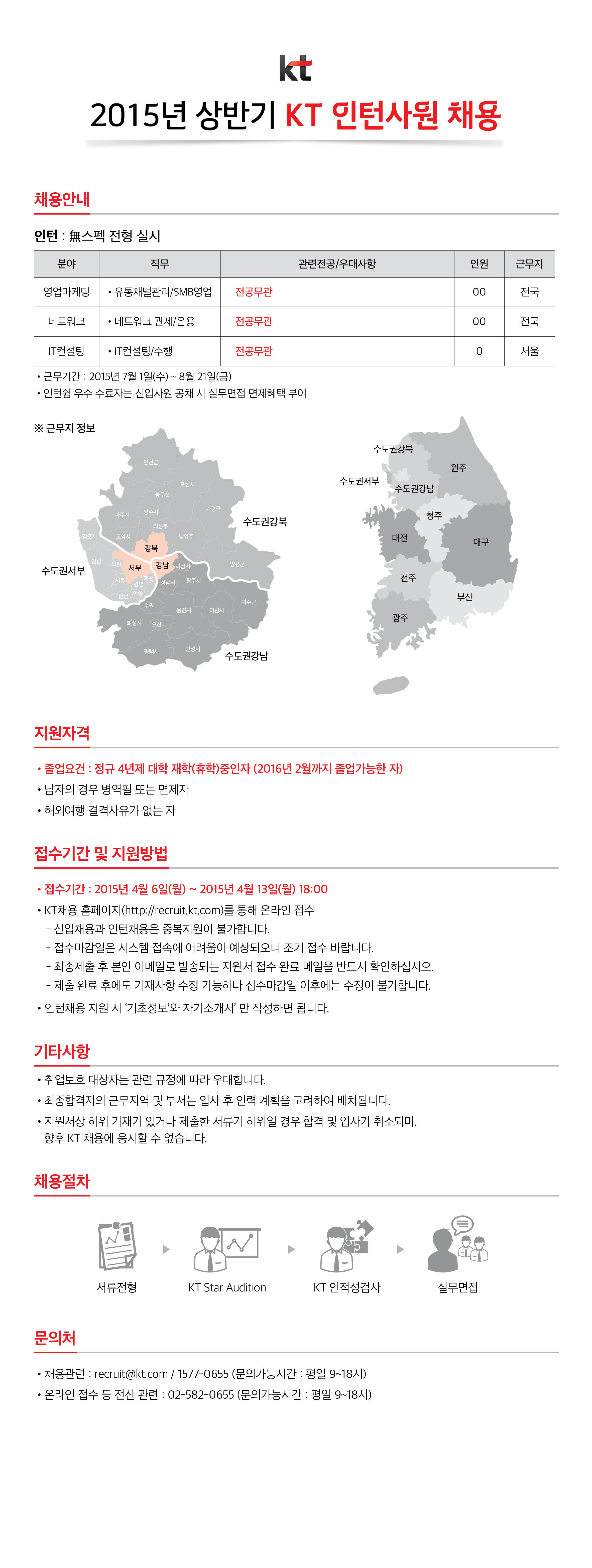 * 자세한 내용은 홈페이지 (http://2015ktrecruit.com/) 통해 확인 바랍니다.