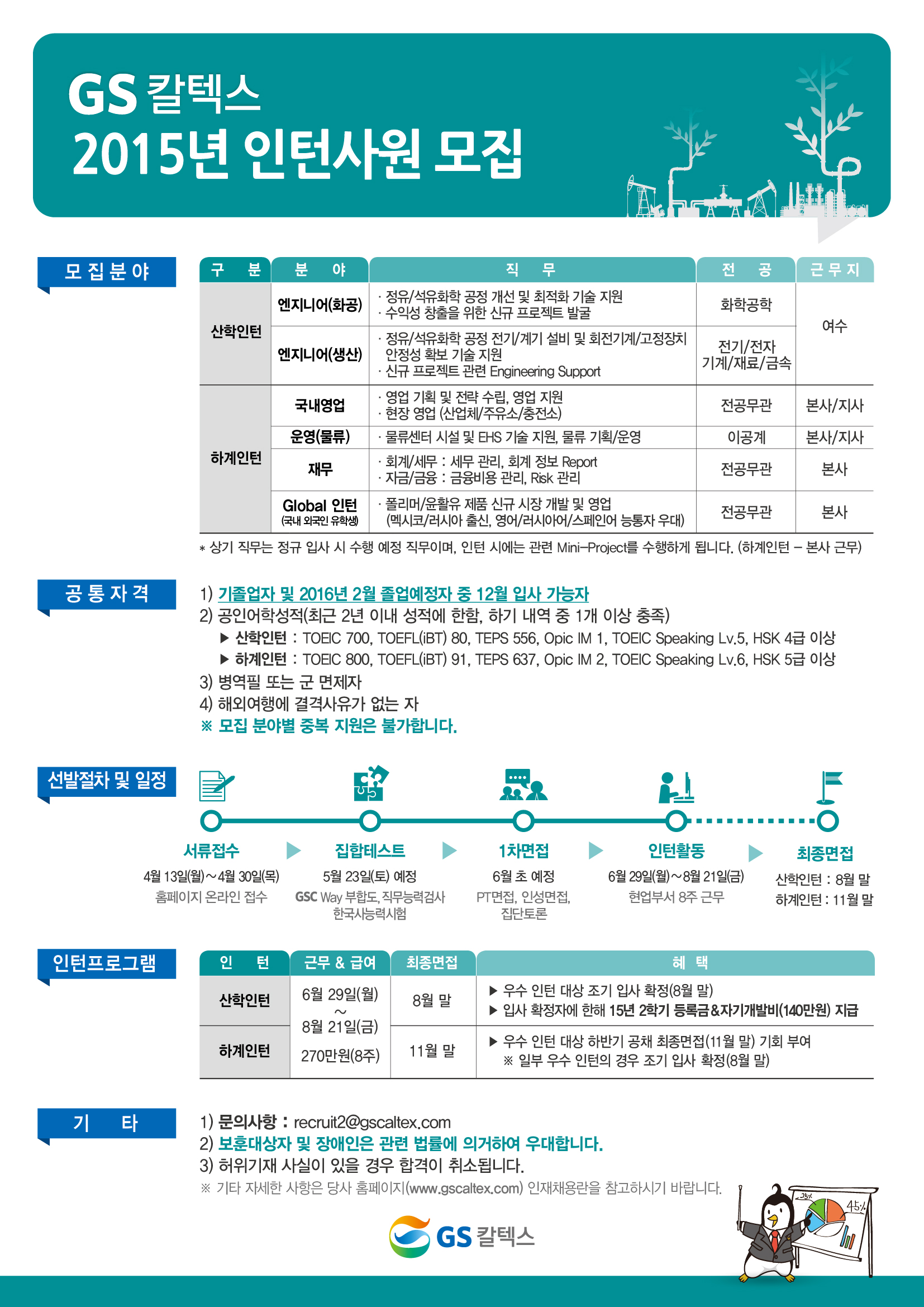 자세한 사항은 당사 홈페이지 (www.gscaltex.com) 인재채용란을 참고하시기 바랍니다.