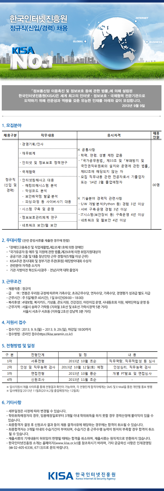 한국인터넷진흥원 채용안내(설명회 9월 26일 3시 광주 CGI센터)