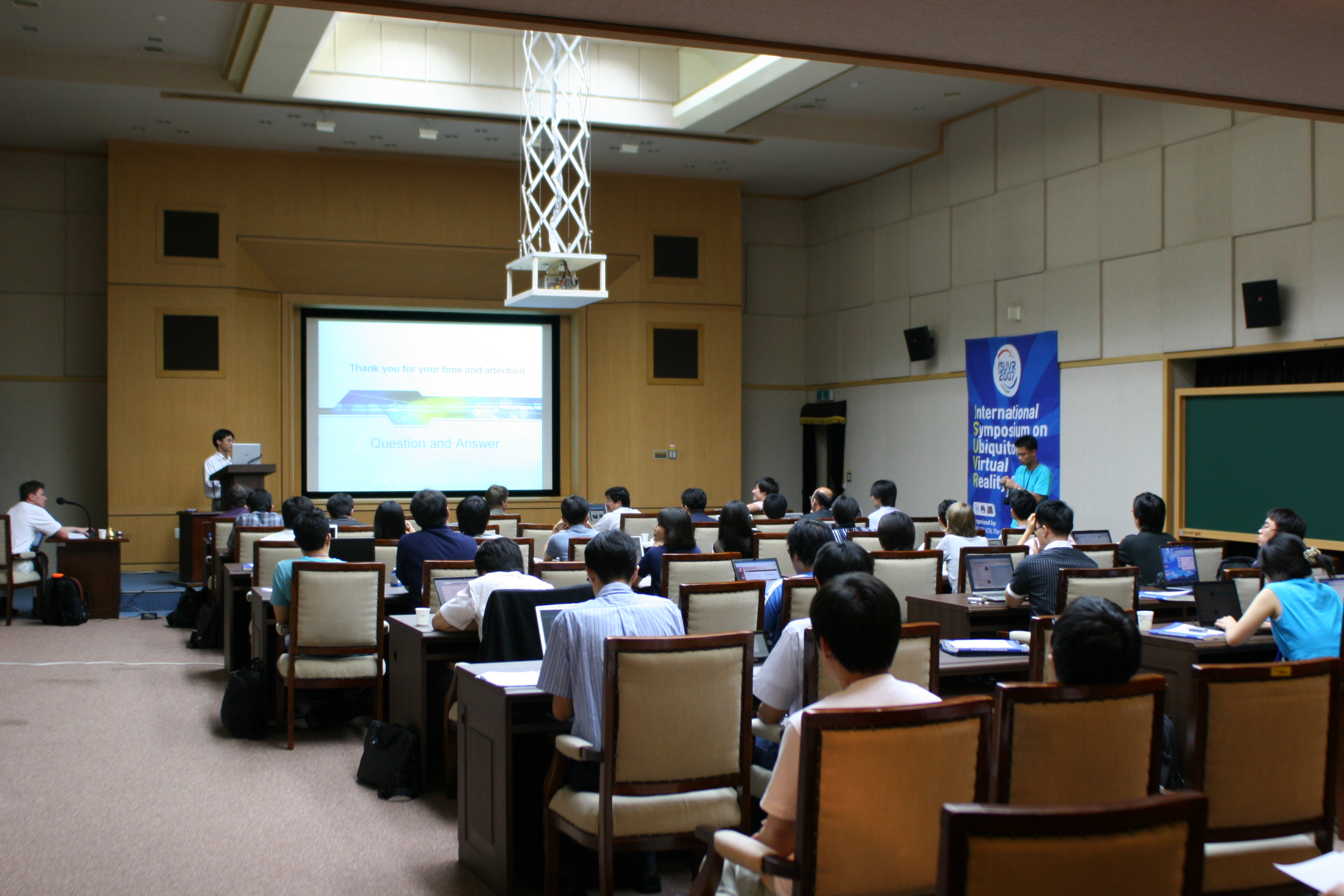 이는 광주과기원 문화콘텐츠기술연구소(CTI, 소장 우운택)가 매년 주관하는 국제심포지엄 ‘ISUVR2007(유비쿼터스 가상현실 국제심포지엄 2007, http://uvr.gist.ac.kr/isuvr07)"의 일환이다. 그런데 흥미로운 것은 이 심포지엄이 광주과기원 박사과정 학생들에 의해 조직되고 운영된다는 점이다. 올해로 다섯 번째를 맞는 국제심포지엄 운영을 맡은 오유수(GIST 박사과정) 조직위원장은 “이 국제심포지엄은 유비쿼터스 가상현실 분야의 석박사 학생들이 중심이 돼 운영하는 국제학회로 국내외 연구자들이 서로의 창의적 아이디어를 교류하는데 큰 역할을 하고 있다”고 말했다.