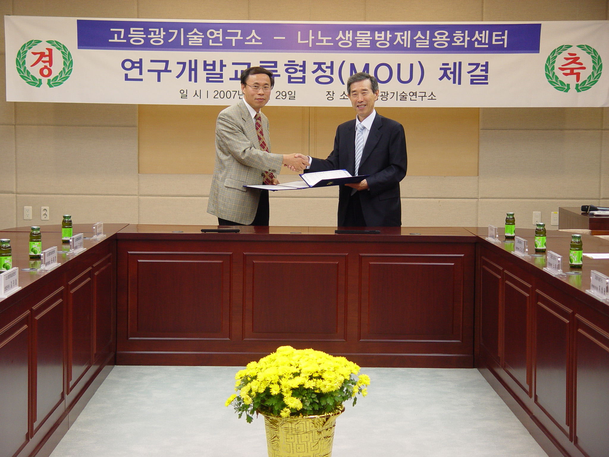 이종민 고등광기술연구소장은 “이번 협약 체결을 통해 양 기관은 서로 협력관계를 강화하고 동시에 융합기술 및 실용화 기술 개발을 통해 지역경제 활성화에 크게 기여할 것으로 기대한다”고 말했다.<홍보협력팀, 2007.10.30>