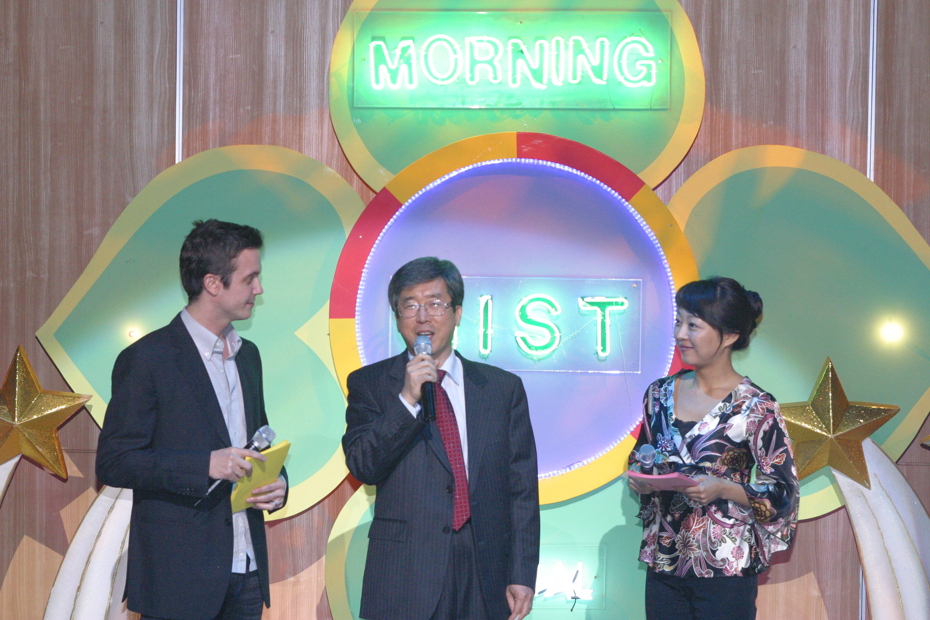 <첨부사진설명: 문승현 GIST원장직무대행이 올해로써 7번째를 맞는 모닝스페셜 공개방송에서 500여명의 방청객과 전국 애청자들을 대상으로 영어로 인사말을 하고 있다.>