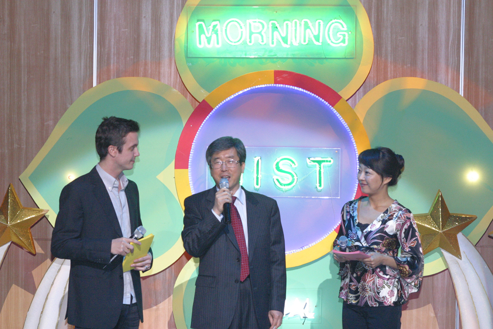 <사진설명: 지역의 이색 이벤트로 자리를 잡아가고 있는 모닝스페셜 공개방송 제작현장. 문승현 원장직무대행이 530여명의 방청객과 전국의 애청자들을 대상으로 인사말을 하고 있다.>
