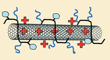 약물 운송체로서 탄소 나노튜브의 잠재성을 배가시키는 고분자 코팅.