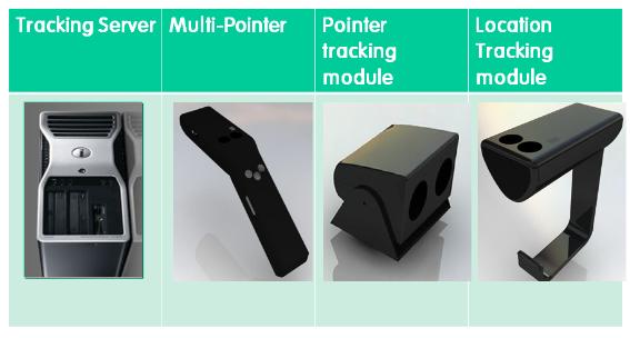 지능형 원격 협업 환경 기술은 지리적으로 떨어져 있는 다수의 사용자들이 마치 한 공간에서 협력하는 것과 동일한 공동작업을 지원하기 위한 기술이다. 이번에 개발된 멀티 트래커는 협업 환경내에서 사용자의 3차원 공간 위치를 인식함과 동시에 해당 장치를 이용해 네트워크 디스플레이 상의 특정 지점을 가리켜서 선택된 지점의 위치를 추적할 수 있도록 해준다. 이를 통해 다수의 사용자들이 지능형 협업 환경 시스템과의 인터랙션을 실감적으로 제어하도록 지원한다. 예를 들면 어떤 발표자가 자료를 발표할 경우 멀티 트래커는 이 발표자의 위치를 시시각각 체크하여 그 위치에 가장 가까운 스크린에 필요한 자료를 끌어다 주는 서비스 등을 가능케 한다.