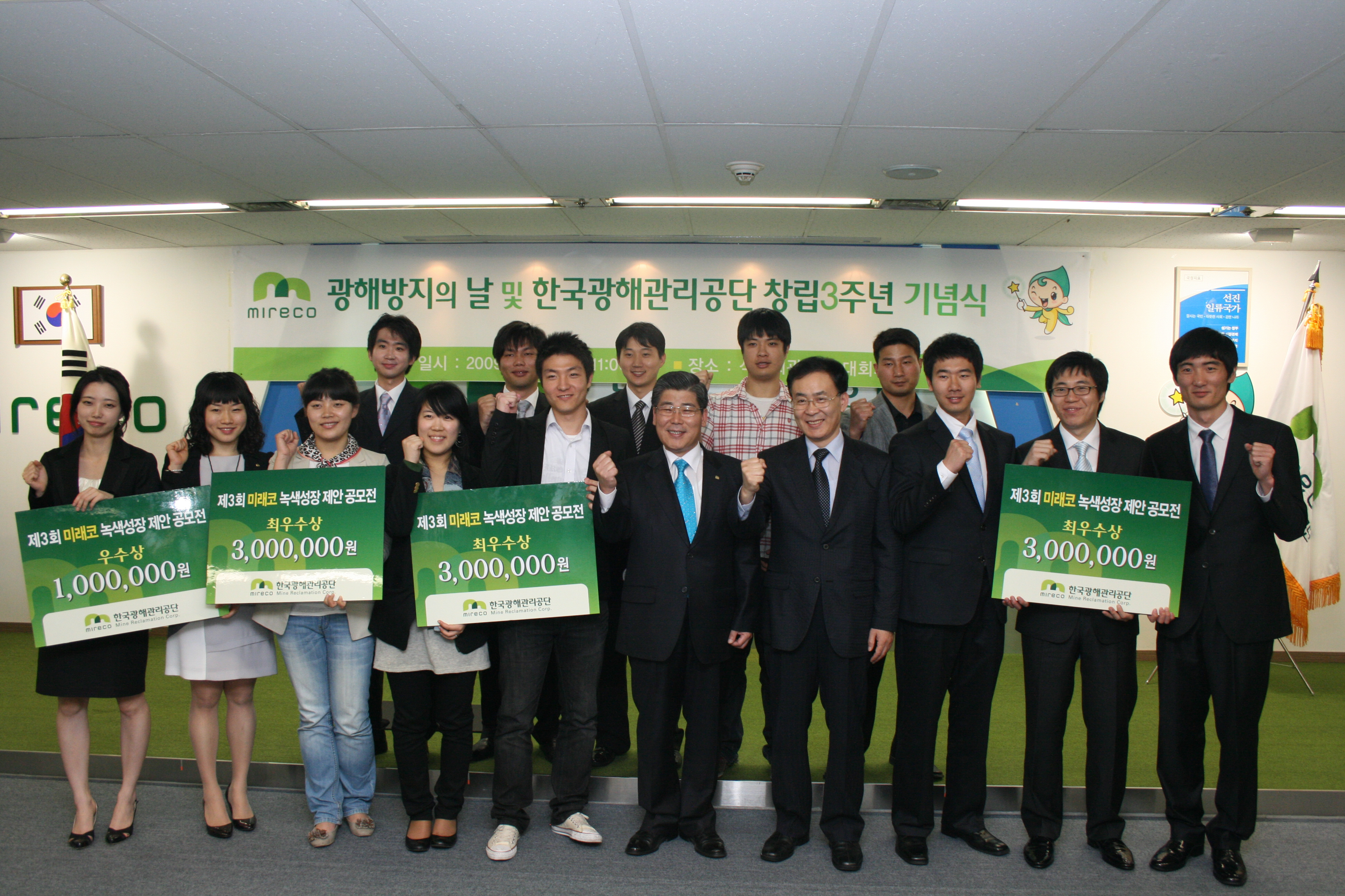 광해관리공단, 녹색성장 제안공모전 광주과기원(GIST, 원장․선우중호) 환경공학과 토양환경연구실(지도교수․김경웅) 석사과정에 재학중인 박지연(25)․김현아(26)학생 팀은 한국광해관리공단(MIRECO)이 주관한 "제3회 미래코 녹색성장 제안공모전‘에서 ’저탄소 녹색성장 시대를 향한 유채 이용 식물 정화와 바이오 디젤 생산‘이라는 주제의 논문으로 28일 최우수상(공단 이사장상, 상금 300만원)을 수상했다. <2009.6.1 전자신문,뉴시스,무등,광남,전광,호남일보 게재>