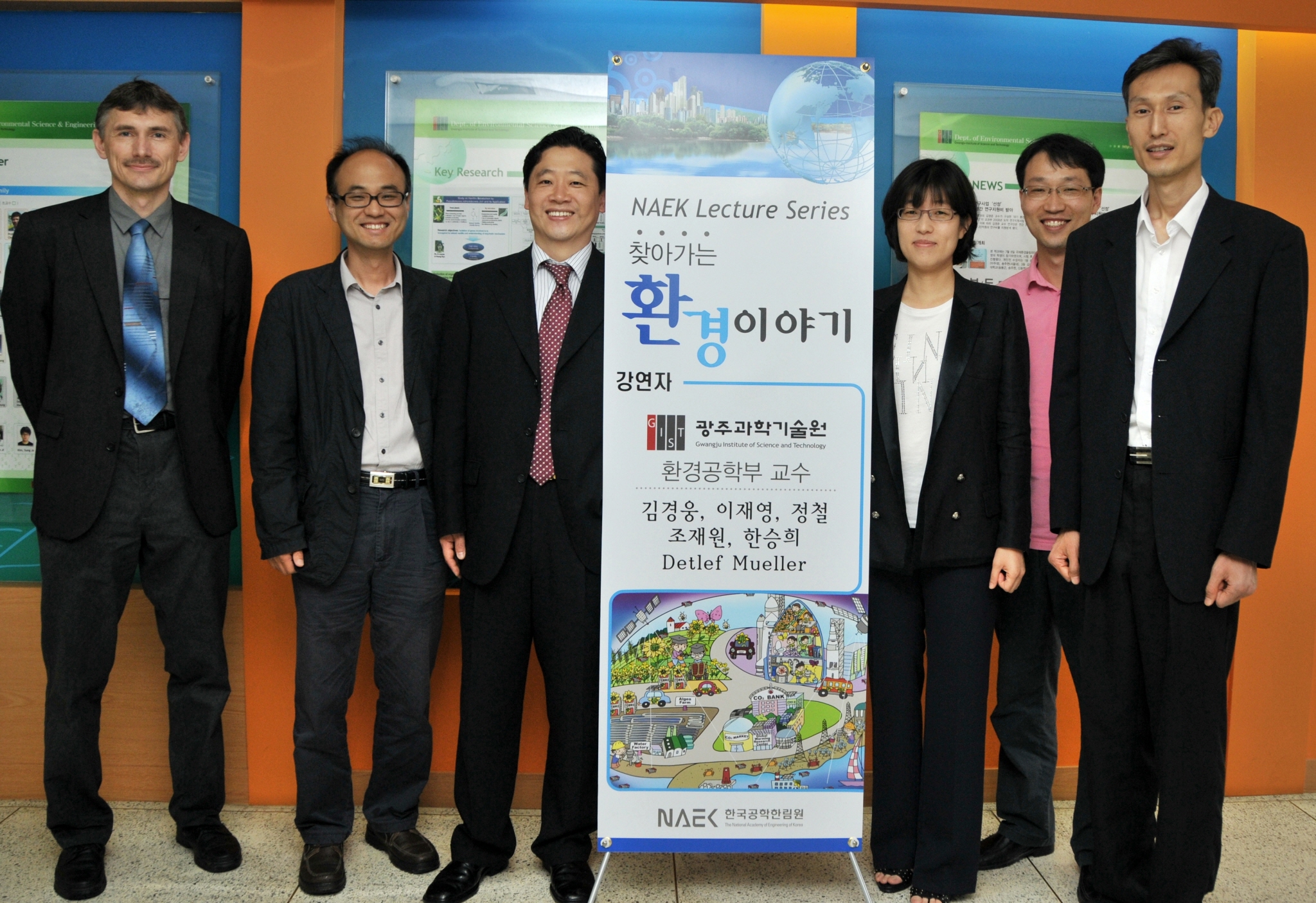 이 날, 광주과학기술원 (GIST, 총장 선우중호) 김경웅 교수 (GIST 환경공학부 교수)를 포함한 6명의 환경과학 전문가들은 200명의 과학꿈나무들을 위한 특별한 시간을 마련했다. 밤낮없이 학업에 열중하느라, 제대로 된 과학강연조차 들을 수 있는 시간이 부족한 학생들을 위해, 환경공학부 교수들이 직접 학교를 방문한 것이다. 이 날 행사에는, 독일 출신의 데트레프 뮬러(Detlef Mueller) 교수도 포함되어 있어 눈길을 끌었다.