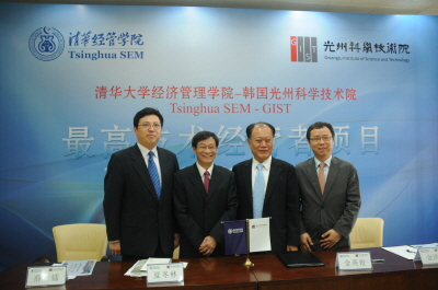 GIST, 칭화대와 공동으로 최고경영자과정 운영 합의 김영준 GIST 기술경영아카데미 원장(오른쪽 2번째)와 시아동린(왼쪽 2번째) SEM 부원장이 협정서에 서명한 후 기념촬영을 하고 있다. [언론보도] 광남일보 (7.12) http://www.gwangnam.co.kr/news/news_view.htm?idxno=2010071211481706285